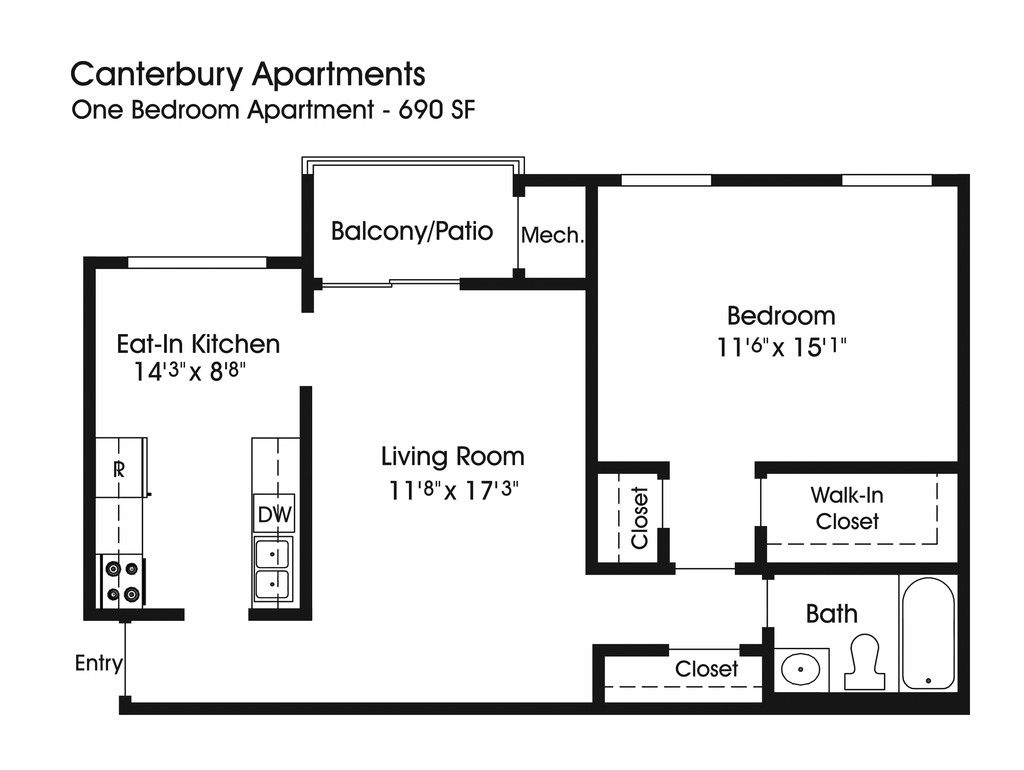Ver Planos No Disponibles1BR 1BA (690sf)