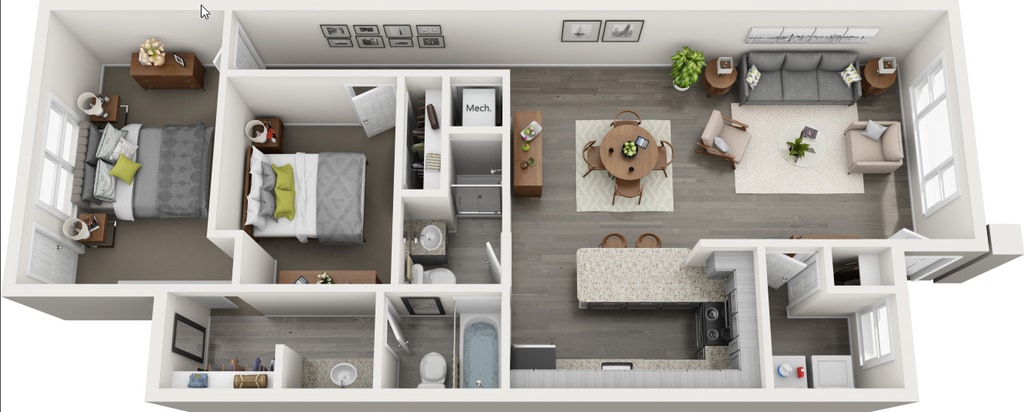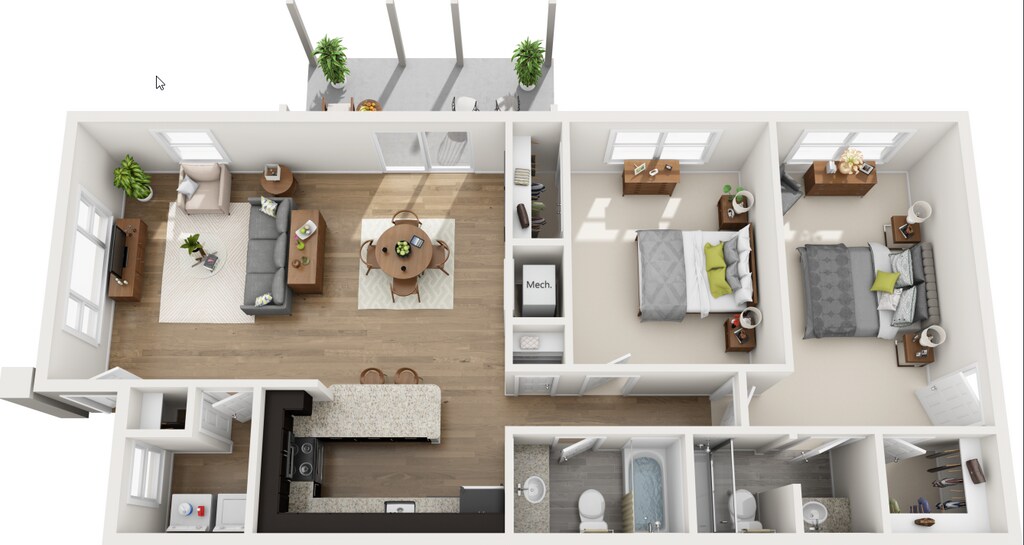 2 Dormitorios, 2 Baños, 1200 pies²Disponible AhoraEl más grandeEsta opción tiene las unidades más grandes para este modeloGalería del Modelo