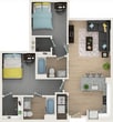 Modelo de apartamento: B2Desde $1,3192 Dormitorios, 2 Baños, 864 sq ftDisponible Ahora![]()