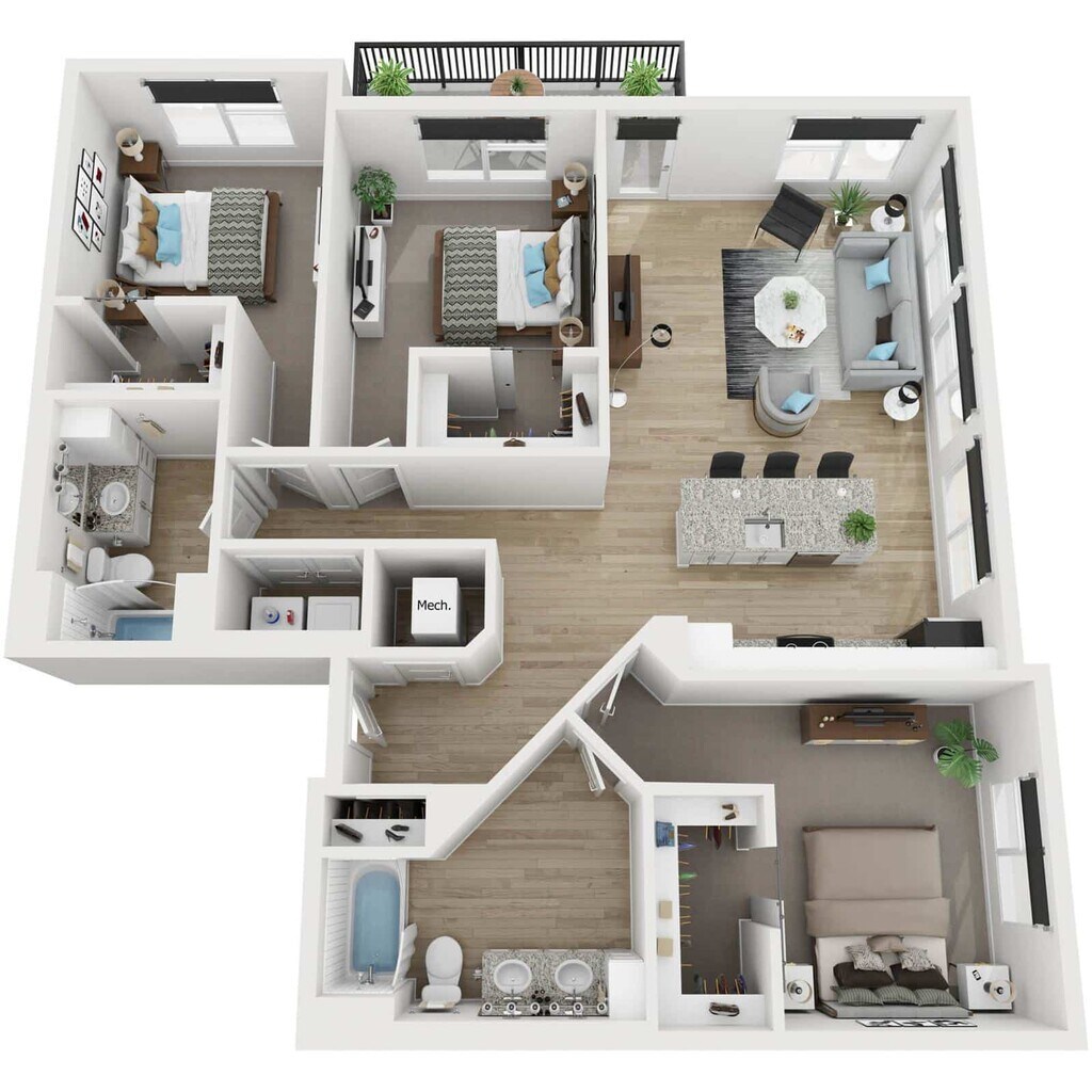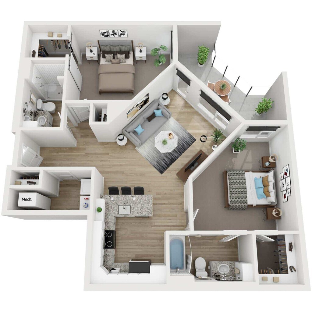 1 Dormitorio, 1 Baño, 923 pies²Disponible prontoEl más grandeEsta opción tiene las unidades más grandes para este modeloGalería del Modelo
