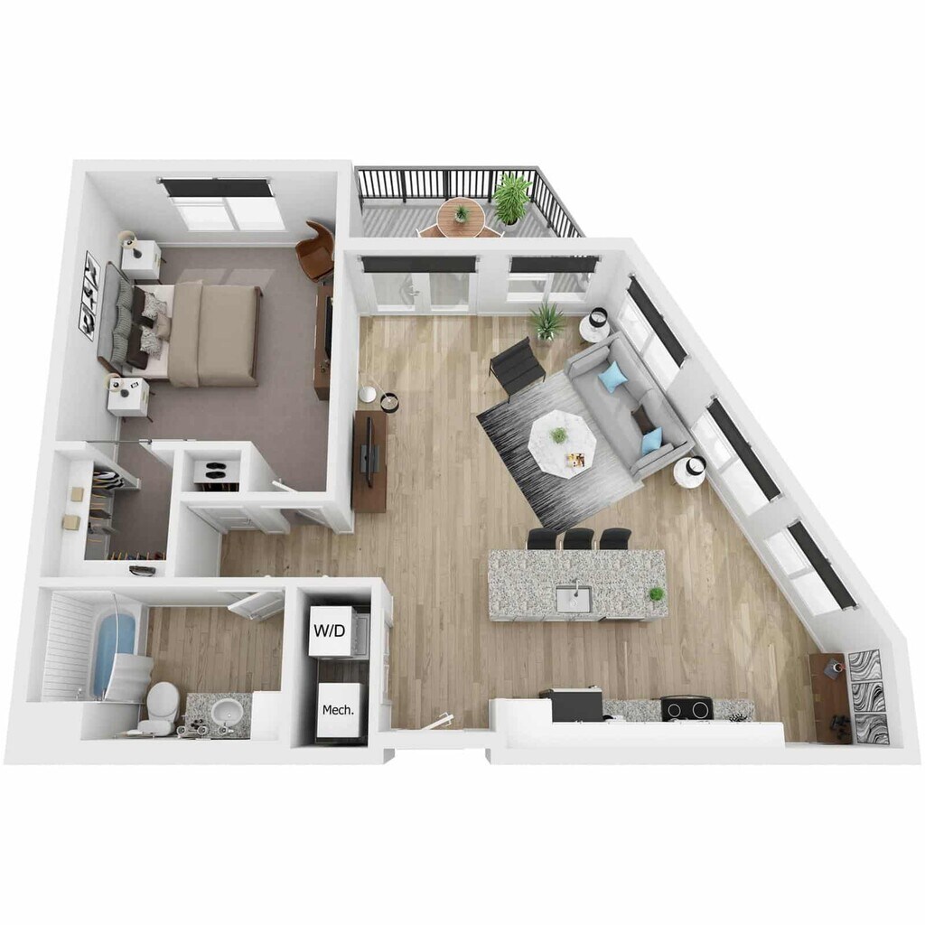 Aurora - Plano 1 Unidad de apartamento: AuroraModelo de apartamento: Aurora$1,6951 Dormitorio, 1 Baño, 722 sq ftDisponible ProntoFrederick