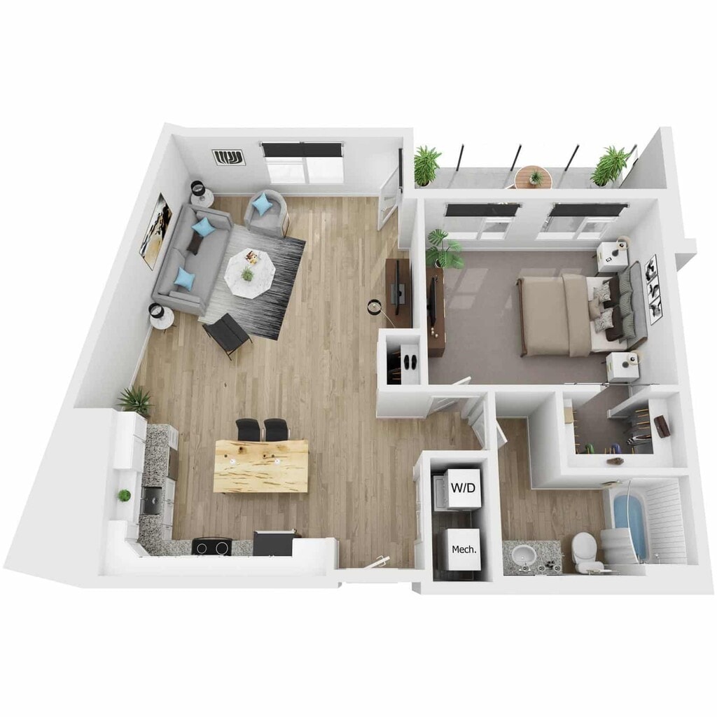 Huey - Plano 1 Unidad de apartamento: HueyModelo de apartamento: Huey$1,8951 Dormitorio, 1 Baño, 878 sq ftDisponible ProntoLouis