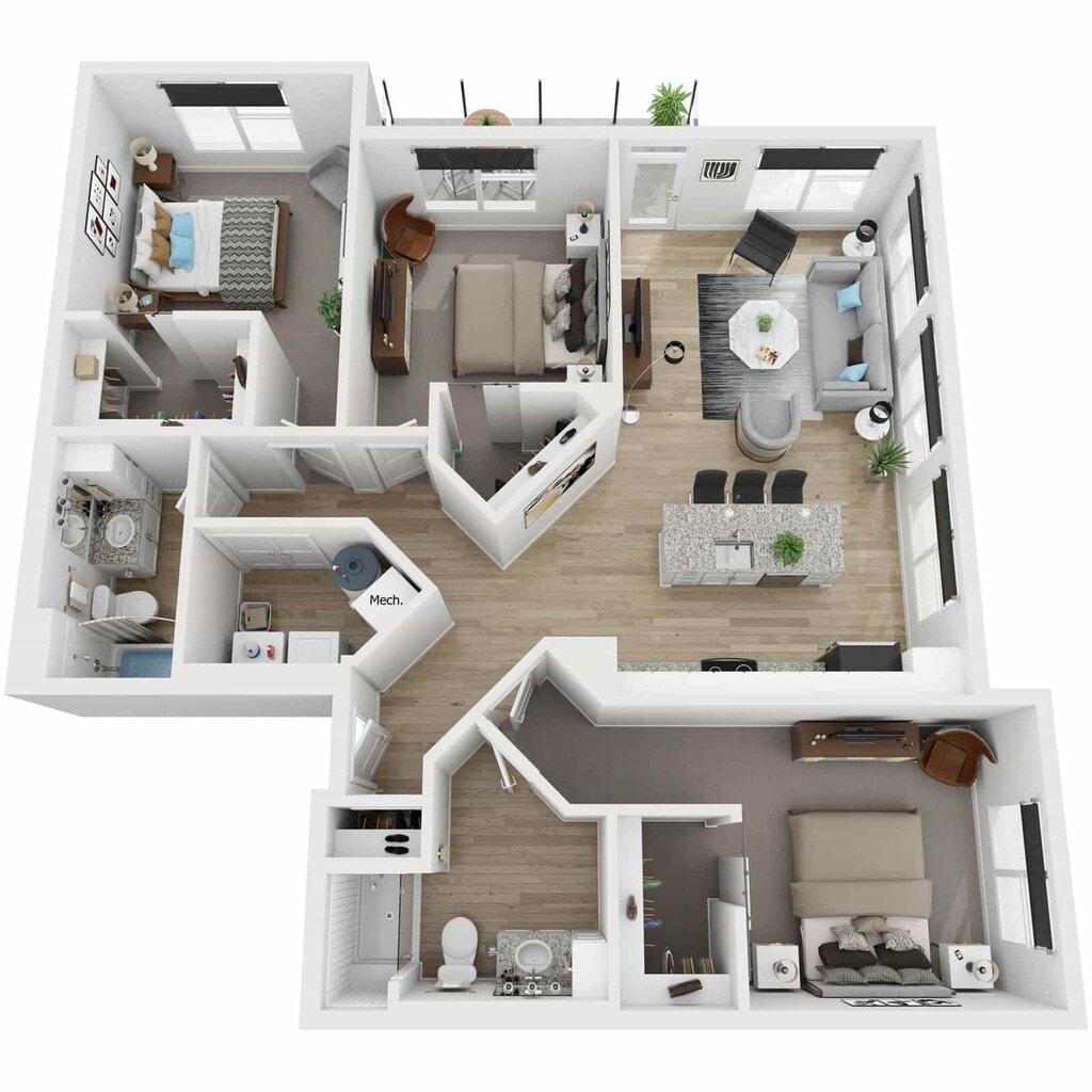 Modelo de apartamento: Louis$2,1951 Dormitorio, 1 Baño, 905 sq ftDisponible pronto![]()