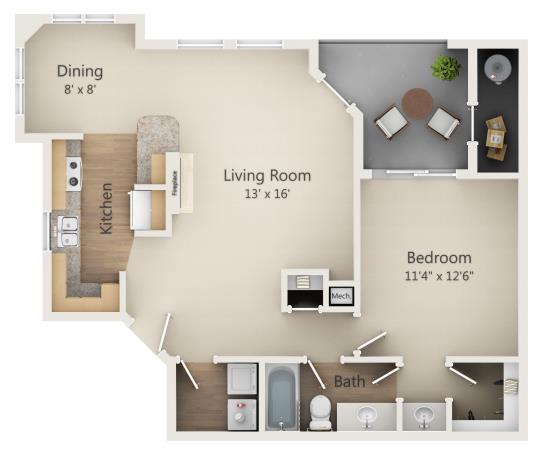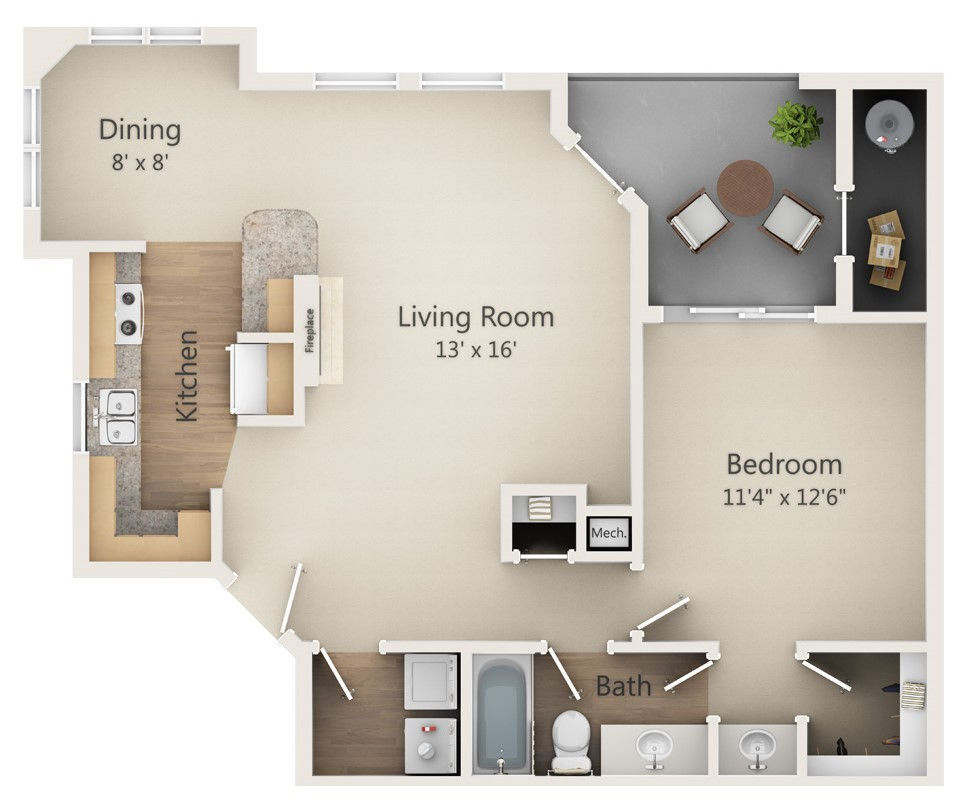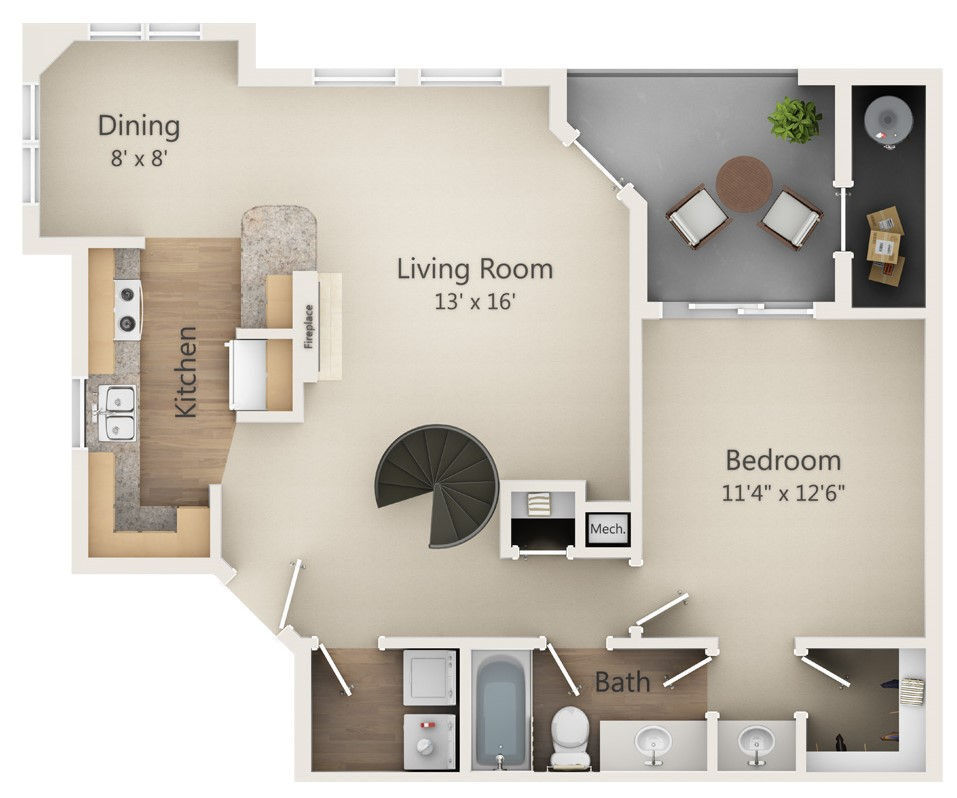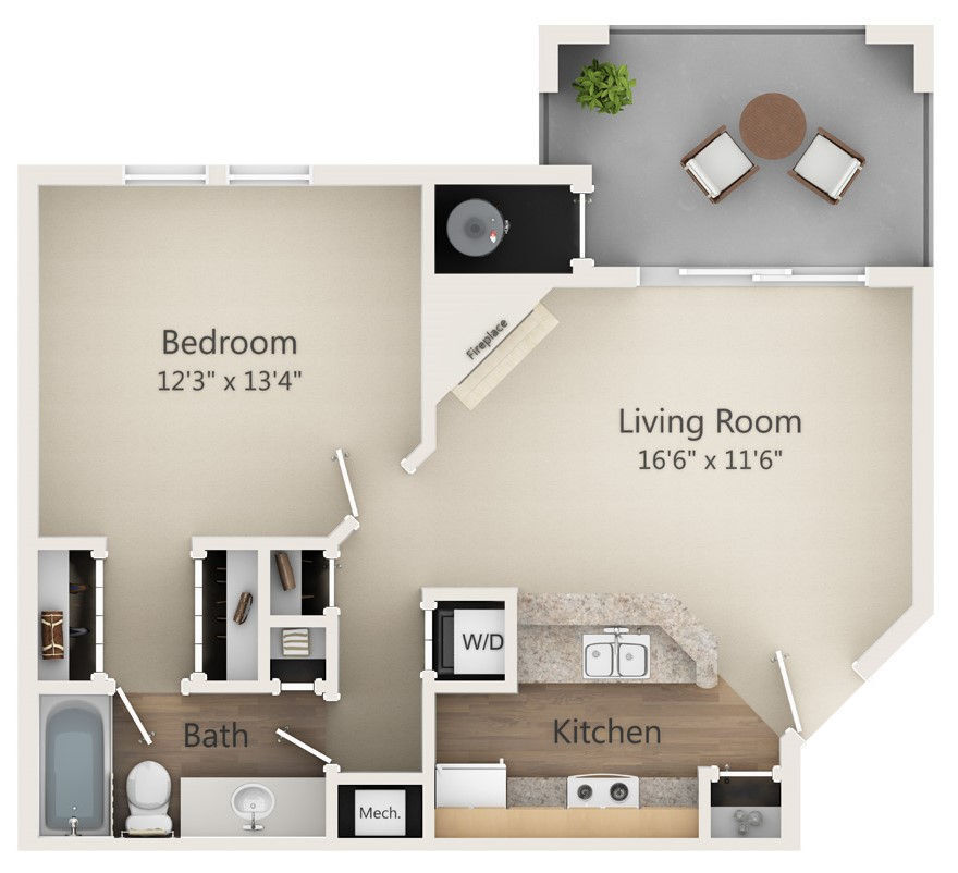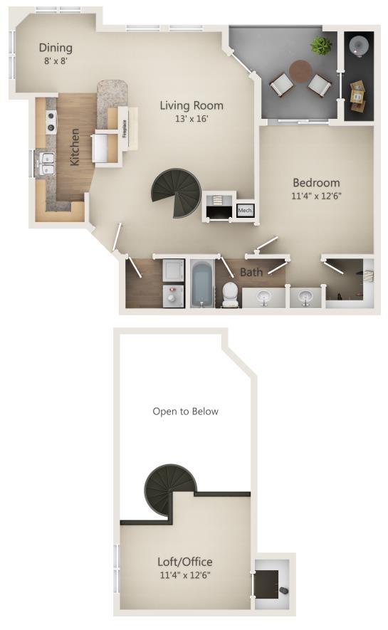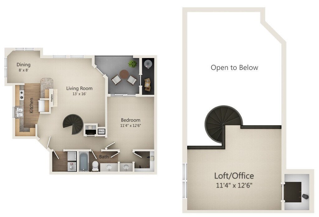 1 Dormitorio, 1 Baño, 782 pies²Disponible AhoraGalería del Modelo