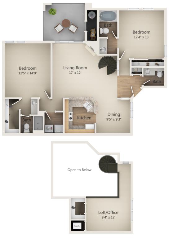 1 Dormitorio, 1 Baño, 963 pies²Disponible AhoraEl más grandeEsta opción tiene las unidades más grandes para este modeloGalería del Modelo