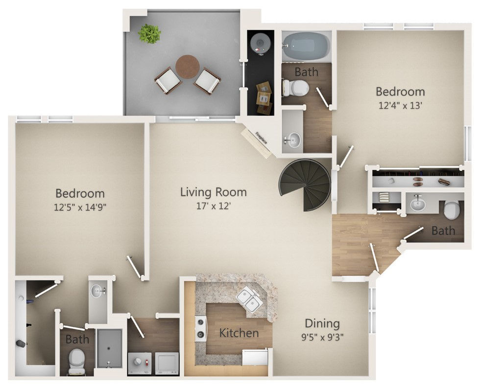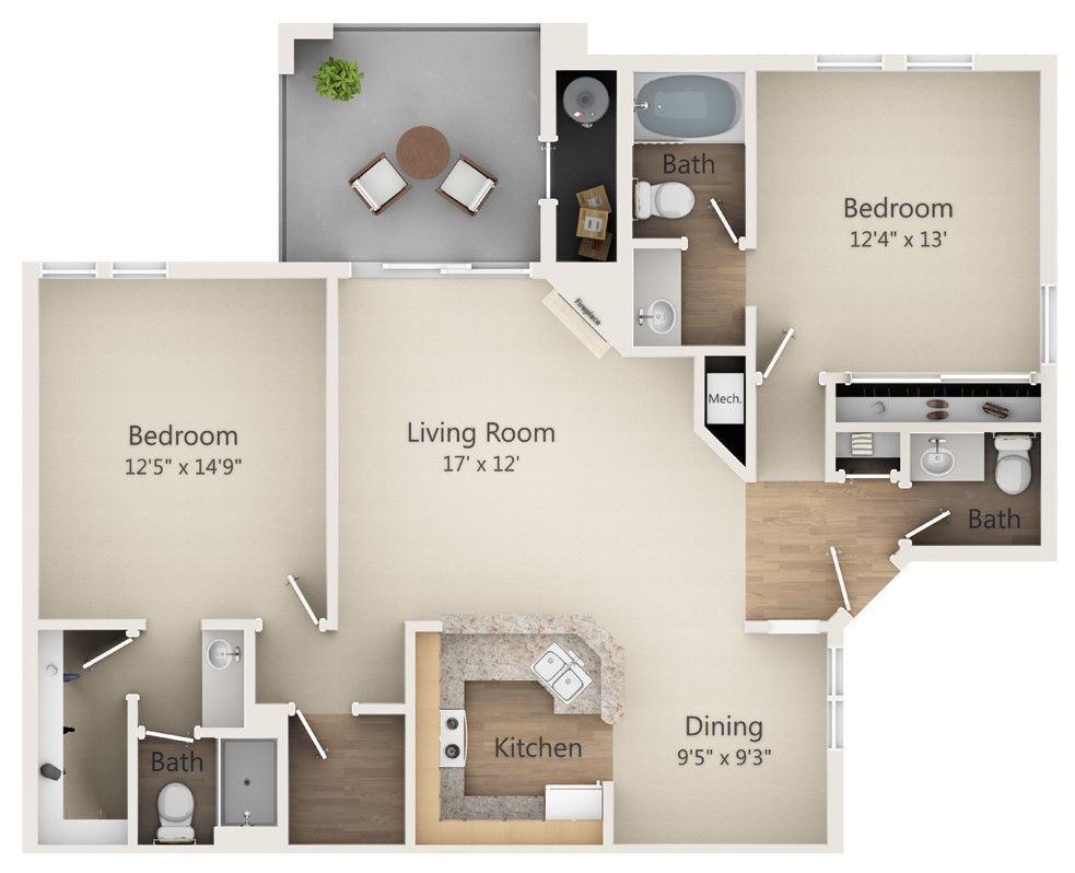 The Banyon - Plano 2 Los planos de la planta son una interpretación artística. Todas las dimensiones son aproximadas. Los tamaños o el detalle del producto real y sus especificaciones pueden variar. No todas las características están disponibles en todos los hogares para rentar. Los precios y la disponibilidad están sujetos a cambios. El alquiler que se muestra es mensual. Se pueden aplicar ciertos cargos, por ejemplo, entrega de paquetes, recolección de basura, agua, servicios, etc. Depositos varian. Consulta a un representante para conocer detalles.