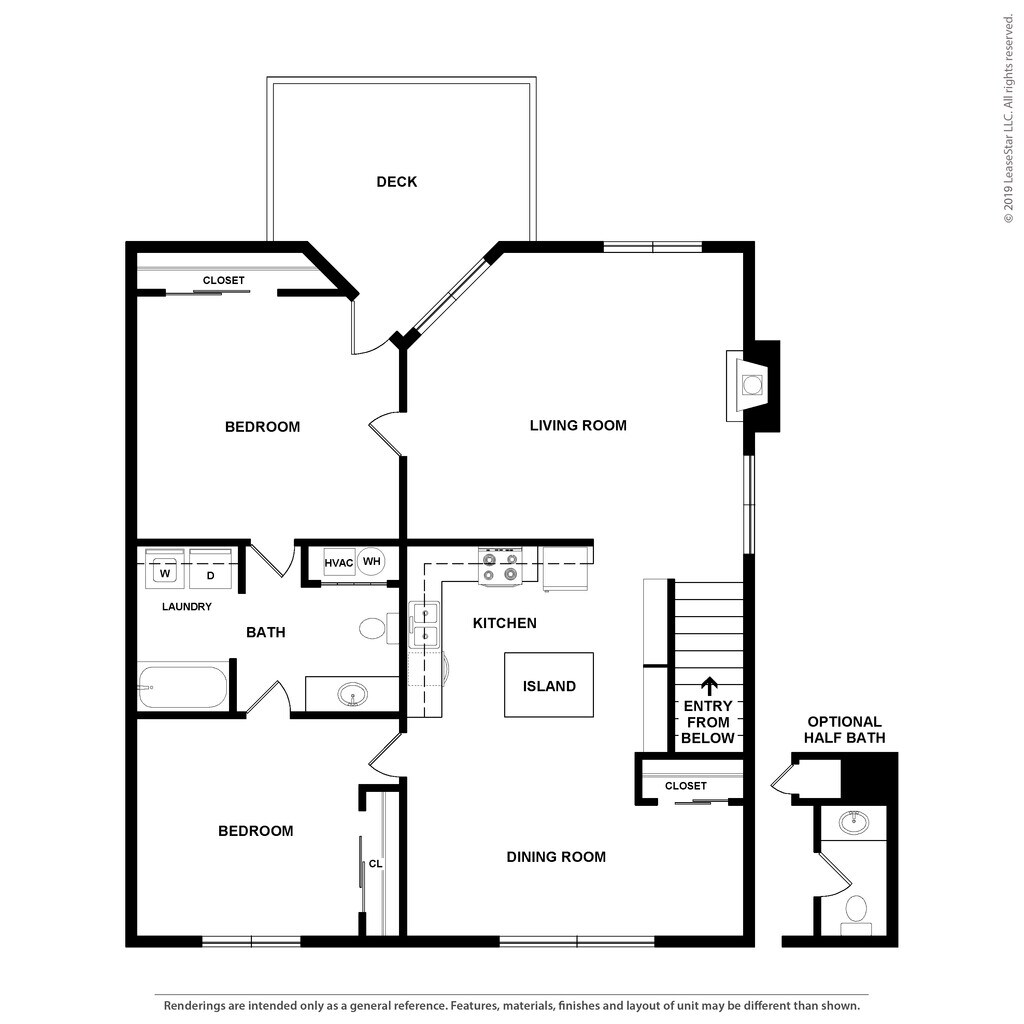2 Dormitorios, 1 Baño, 1190 pies²Galería del Modelo