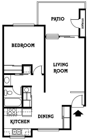 1 Dormitorio, 1 Baño, 618 pies²Galería del Modelo