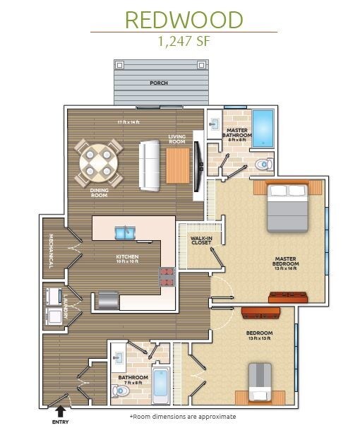 Modelo de apartamento: REDWOOD$2,0202 Dormitorios, 2 Baños, 1247 sq ftDisponible Ahora![]()
