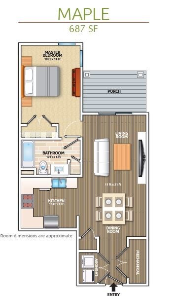 Modelo de apartamento: MAPLE$1,6951 Dormitorio, 1 Baño, 687 sq ftDisponible Ahora![]()