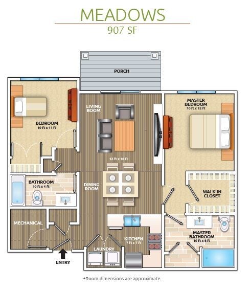 Modelo de apartamento: MEADOWS$1,8952 Dormitorios, 2 Baños, 907 sq ftDisponible Ahora![]()