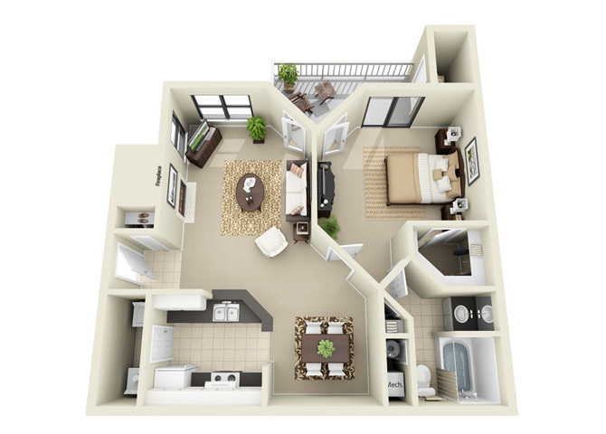 Modelo de apartamento: The Willow1 Dormitorio, 1 Baño, 759 sq ftDisponible Ahora![]()