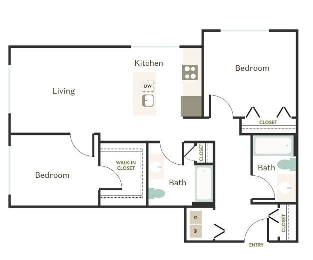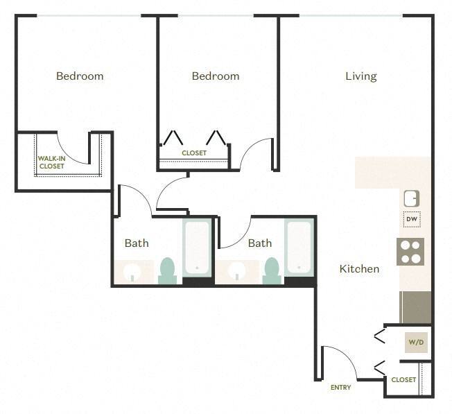 Modelo de apartamento: 1x1 - D2Desde $3,2001 Dormitorio, 1 Baño, 585 sq ftDisponible April 21, 2026![]()