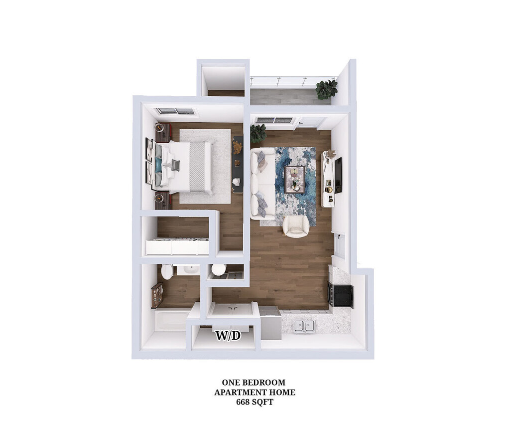 Modelo de apartamento: 1A1 Dormitorio, 1 Baño, 668 sq ftDisponible December 6, 2025PlanosFotos![]()