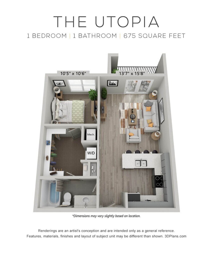 Modelo de apartamento: The UtopiaDesde $1,3951 Dormitorio, 1 Baño, 675 sq ftDisponible December 1, 2025![]()