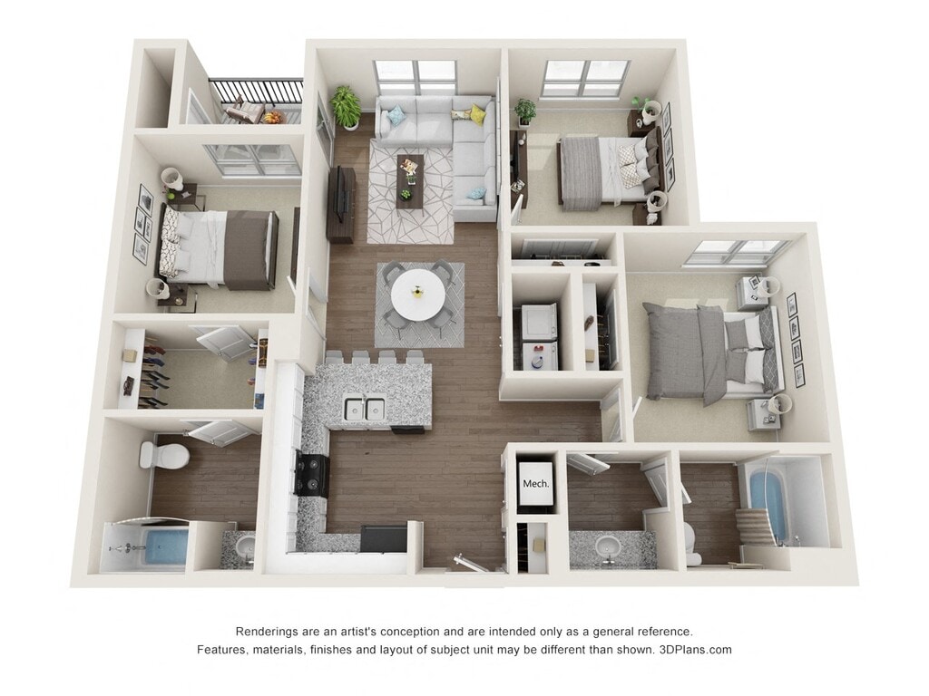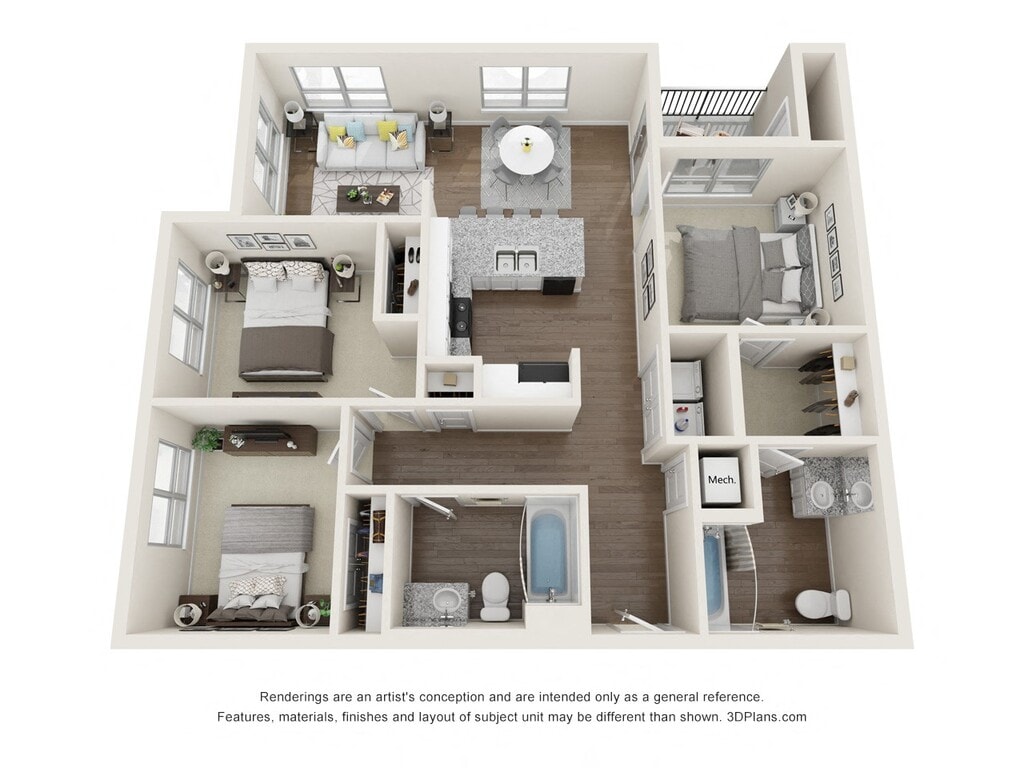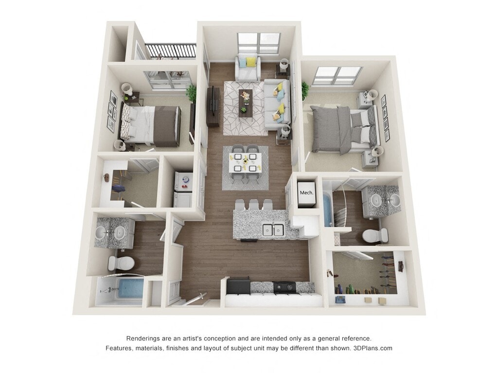 Modelo de apartamento: C3Desde $1,1093 Dormitorios, 2 Baños, 1110 sq ftDisponible Ahora![]()