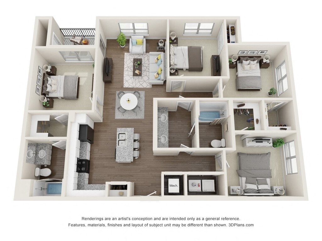 Modelo de apartamento: D1Desde $1,5134 Dormitorios, 2 Baños, 1324 sq ftDisponible Ahora![]()