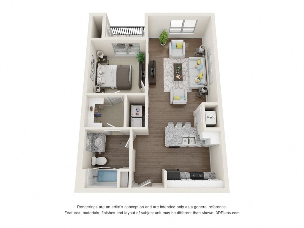 Modelo de apartamento: A1$1,1731 Dormitorio, 1 Baño, 656 sq ftDisponible Ahora![]()