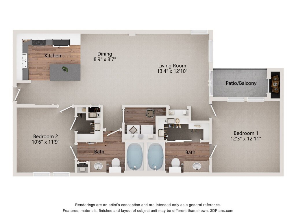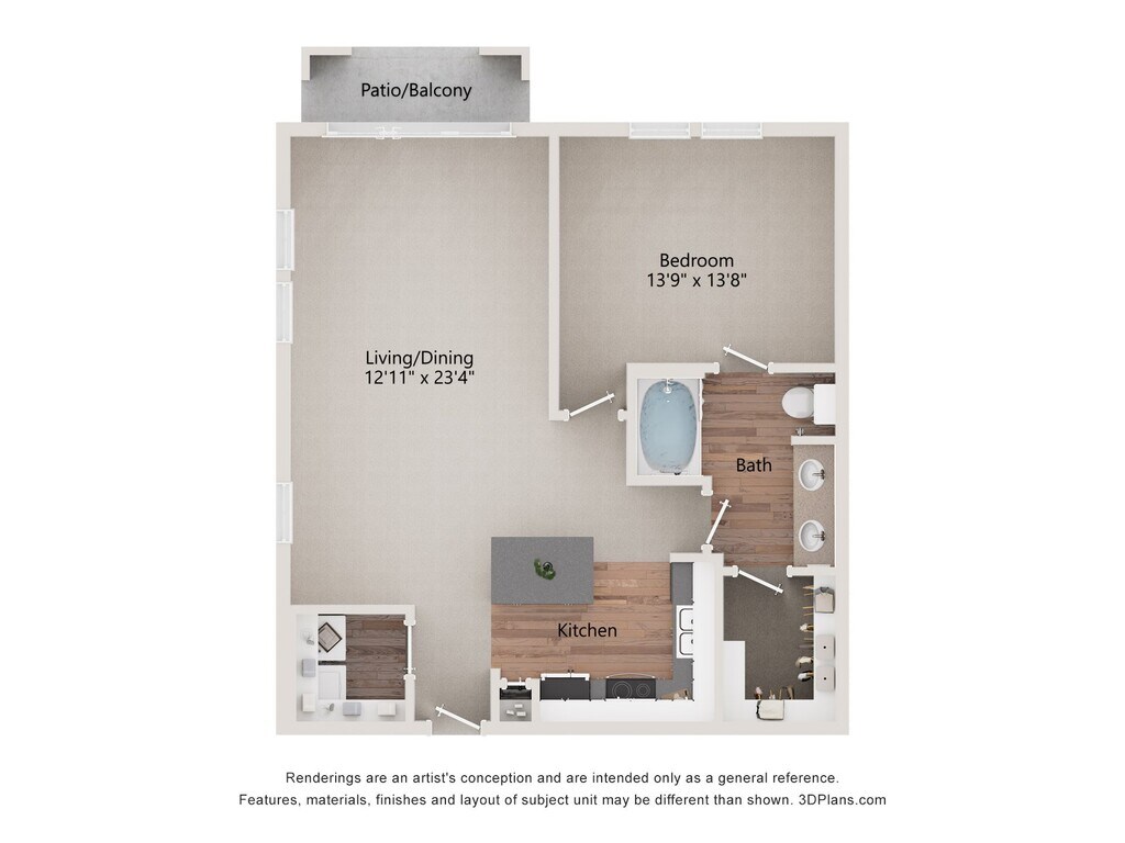 Modelo de apartamento: A3Desde $1,3111 Dormitorio, 1 Baño, 696 sq ftDisponible Ahora![]()