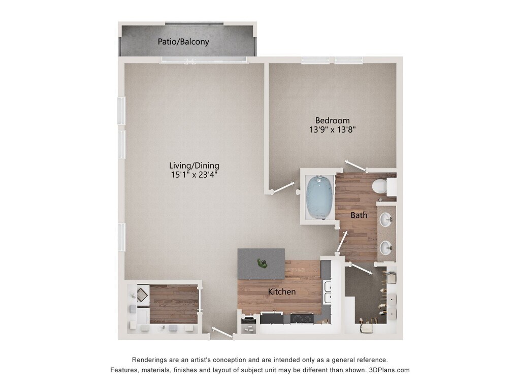 1 Dormitorio, 1 Baño, 779 pies²Disponible AhoraGalería del Modelo