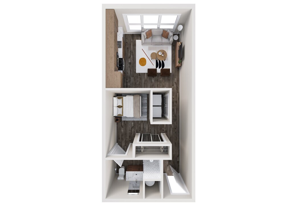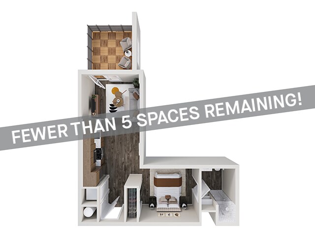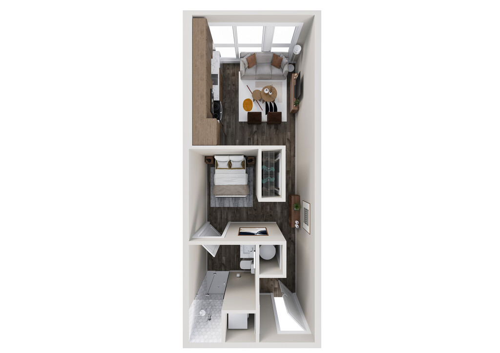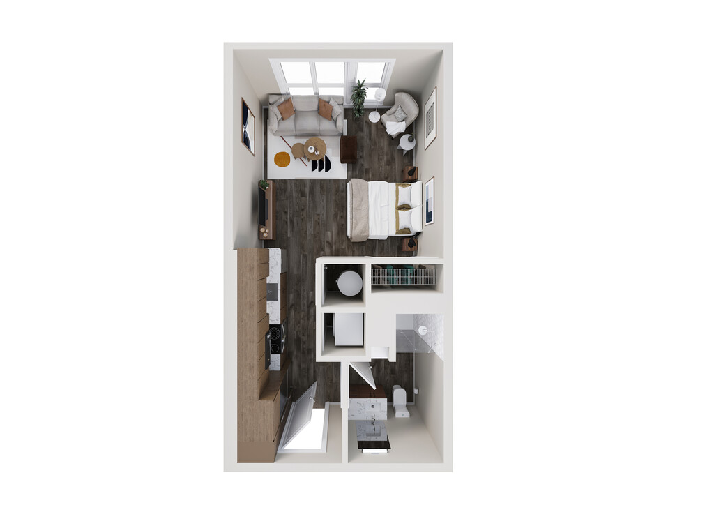 Estudio, 1 Baño, 429-504 pies²Más CargosDisponible January 14, 2026El más grandeEsta opción tiene las unidades más grandes para este modeloGalería del Modelo