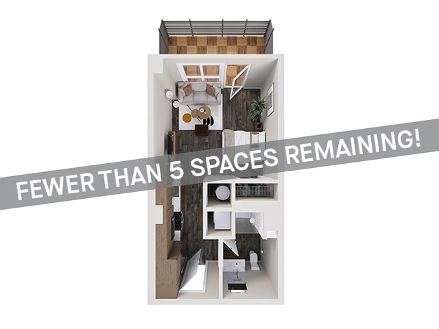 Modelo de apartamento: Sx1Llame para PreciosEstudio, 1 Baño, 387 sq ftNo DisponibleSx1 - Plano 1 Sx1 Balcony