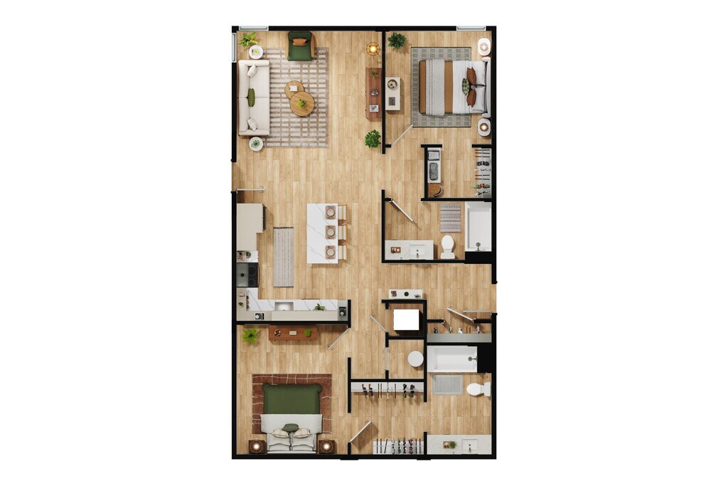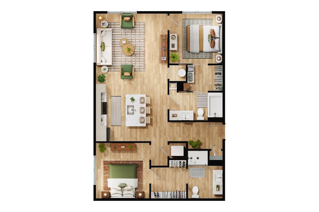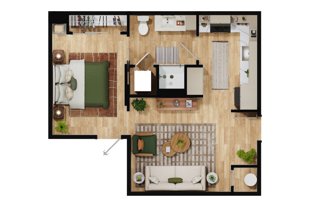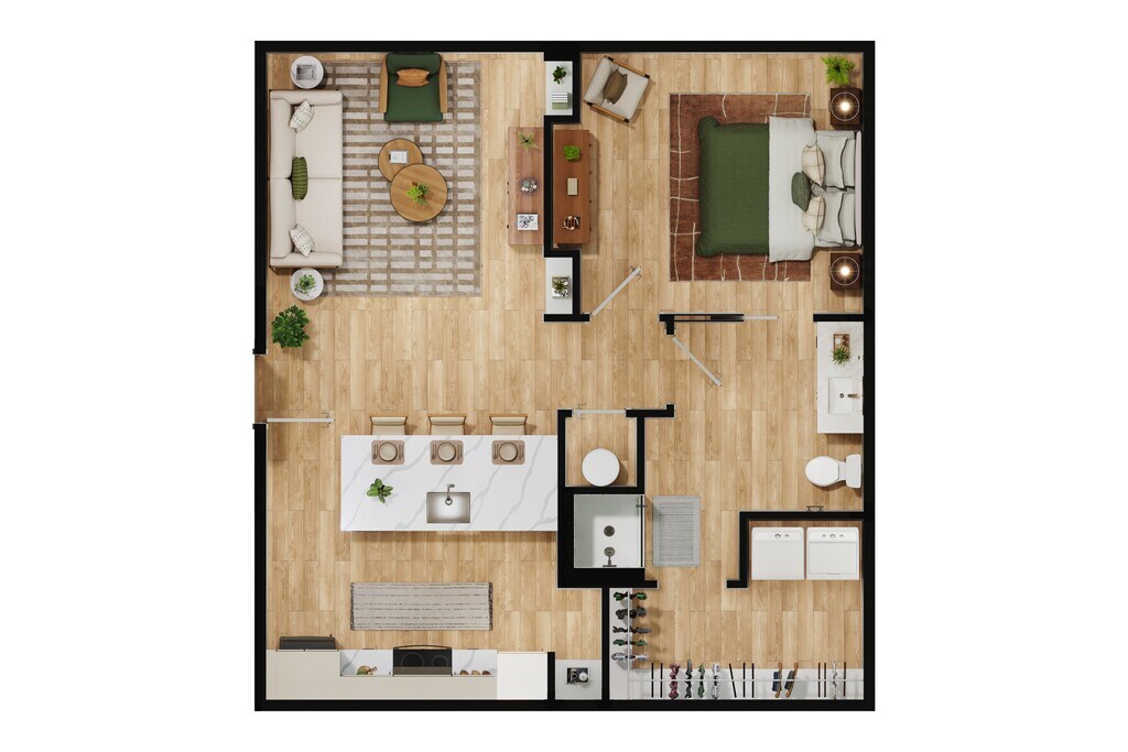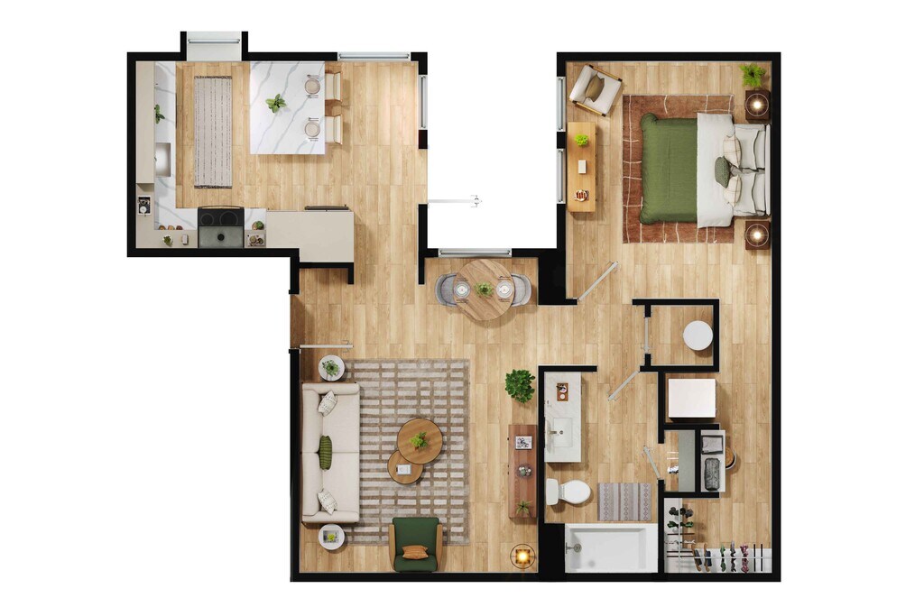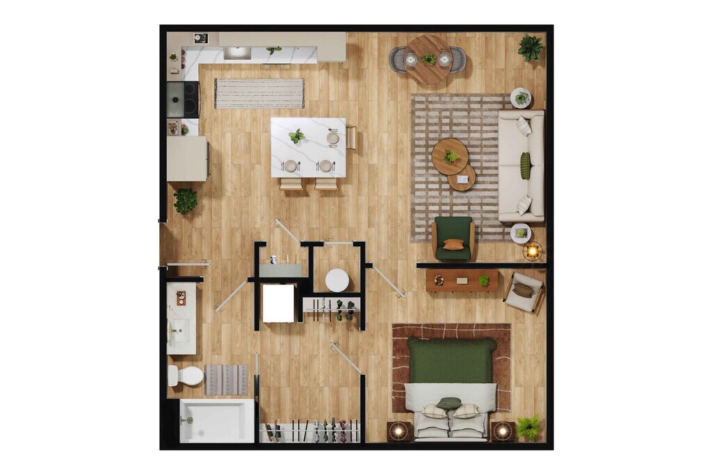 Modelo de apartamento: A1Desde $1,4501 Dormitorio, 1 Baño, 685-1016 sq ftDisponible June 1, 2026![]()