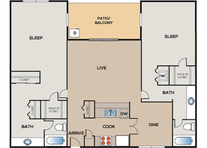 Modelo de apartamento: B12 Dormitorios, 2 Baños, 1157 sq ftDisponible Ahora![]()