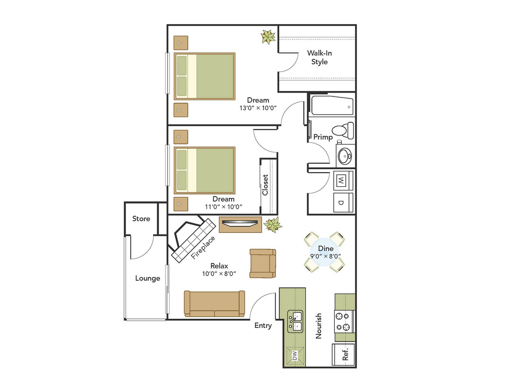Modelo de apartamento: 2 Bed, 2 Bath D UpgradedDesde $1,9702 Dormitorios, 2 Baños, 918 sq ftDisponible Ahora![]()