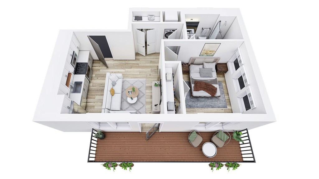 Modelo de apartamento: SageDesde $1,4451 Dormitorio, 1 Baño, 566 sq ftDisponible March 31, 2026PlanosFotos![]()