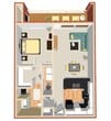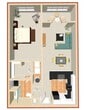 1 Dormitorio, 1 Baño, 850 pies²Precio Mensual TotalDisponible AhoraGalería del Modelo