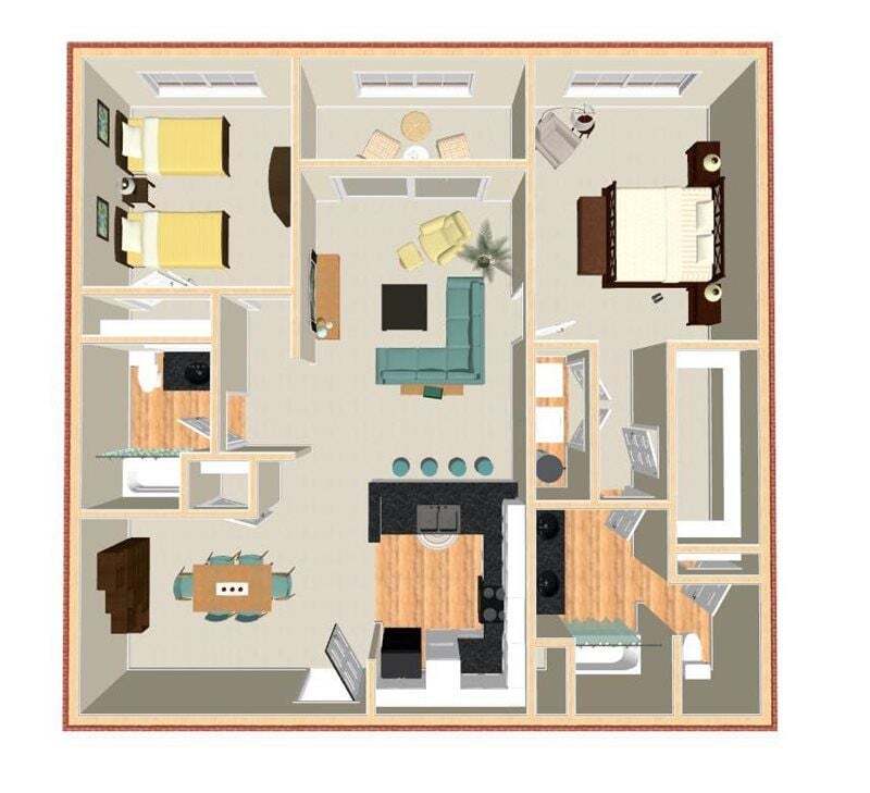 Modelo de apartamento: A3Desde $1,2561 Dormitorio, 1 Baño, 850 sq ftDisponible AhoraLos planos son representaciones artísticas. Todas las dimensiones son aproximadas. El producto y las especificaciones reales pueden variar en tamaño o detalle. No todas las características están disponibles en cada vivienda en alquiler. Por favor, consulta con un representante para obtener más detalles.