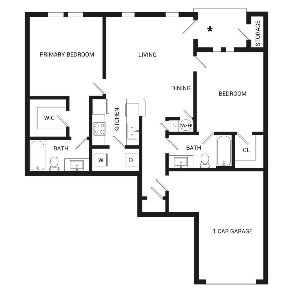Modelo de apartamento: HollyDesde $1,2601 Dormitorio, 1 Baño, 822 sq ftDisponible Ahora![]()