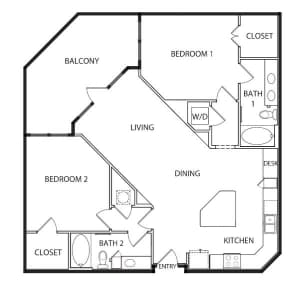 Modelo de apartamento: A3Desde $1,8221 Dormitorio, 1 Baño, 692 sq ftDisponible AhoraLos planos son representaciones artísticas. Todas las dimensiones son aproximadas. El producto y las especificaciones reales pueden variar en tamaño o detalle. No todas las características están disponibles en cada vivienda en alquiler. Por favor, consulta con un representante para obtener más detalles.