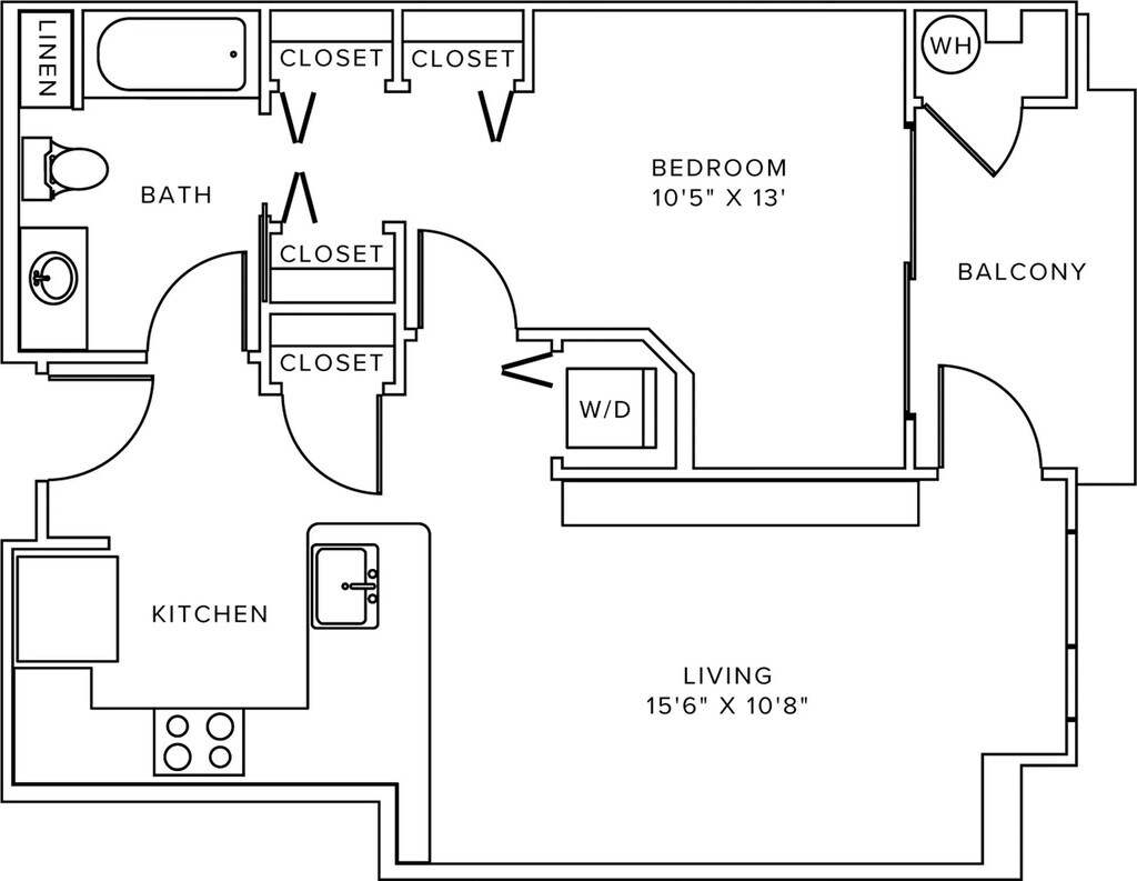 Modelo de apartamento: A021 Dormitorio, 1 Baño, 682-701 sq ftDisponible Ahora![]()