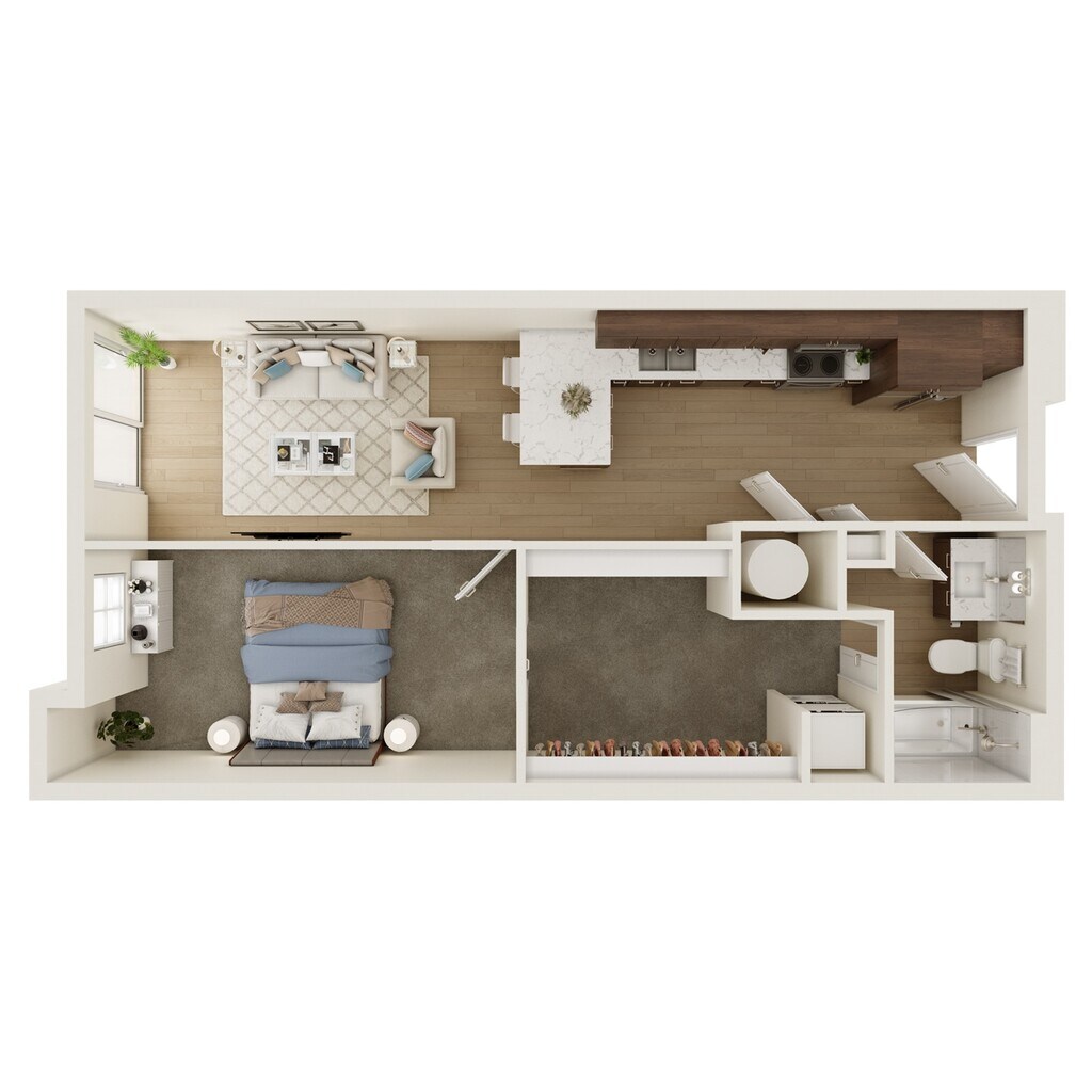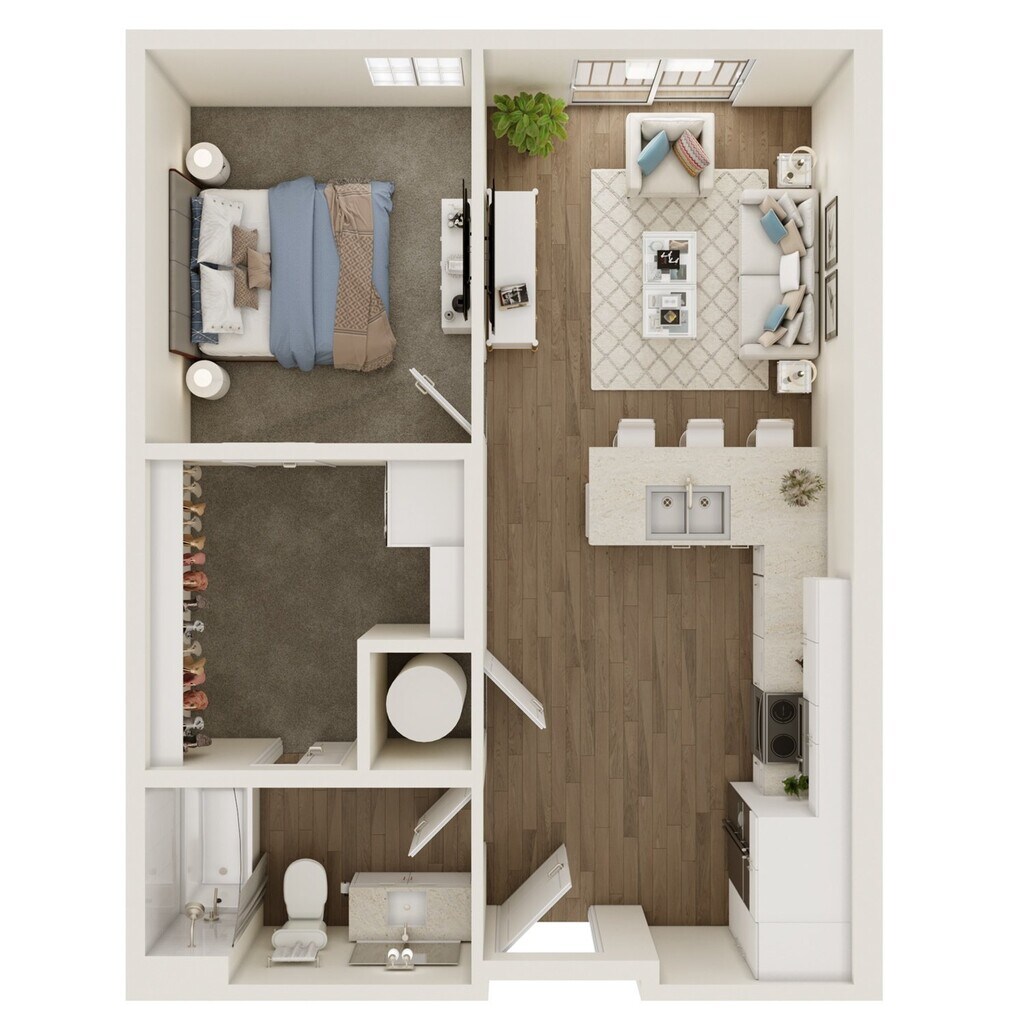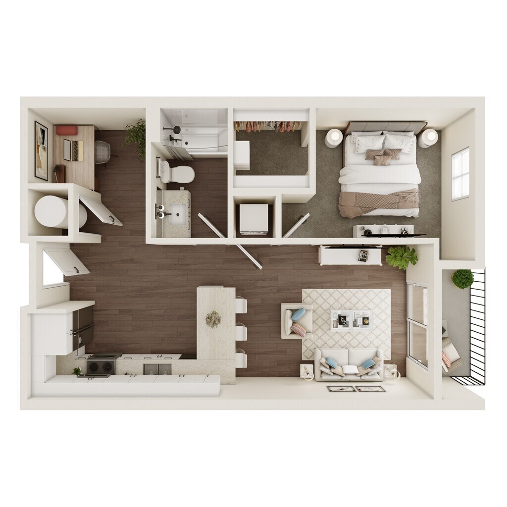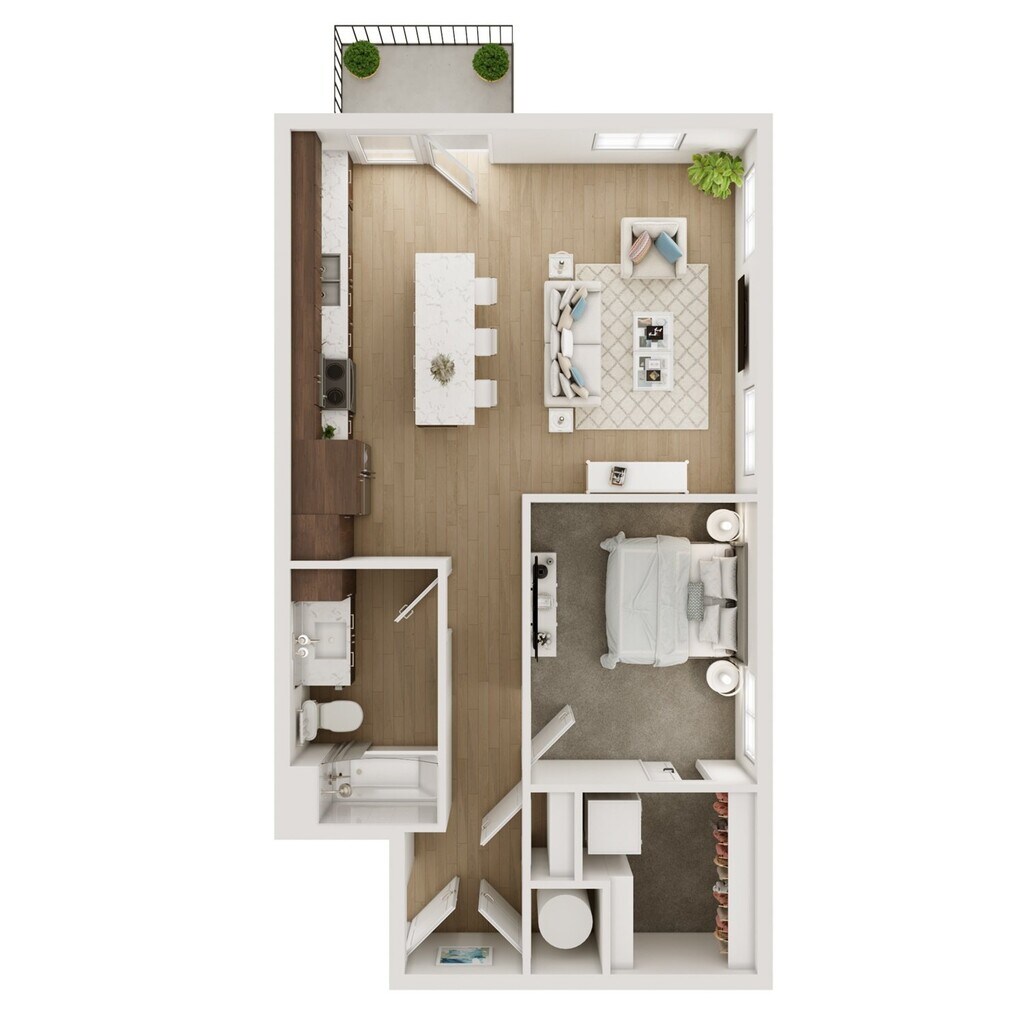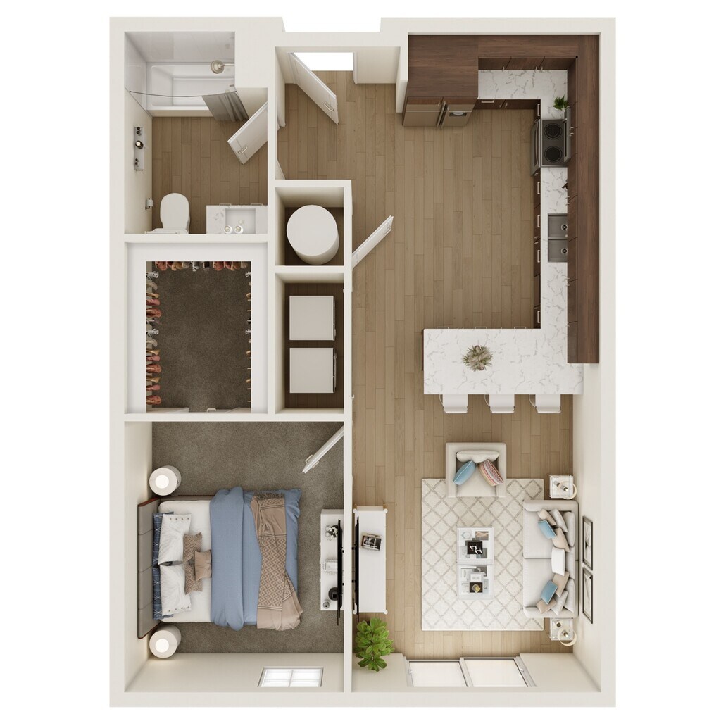 1 Dormitorio, 1 Baño, 677 pies²Disponible February 5, 2026El más grandeEsta opción tiene las unidades más grandes para este modeloGalería del Modelo