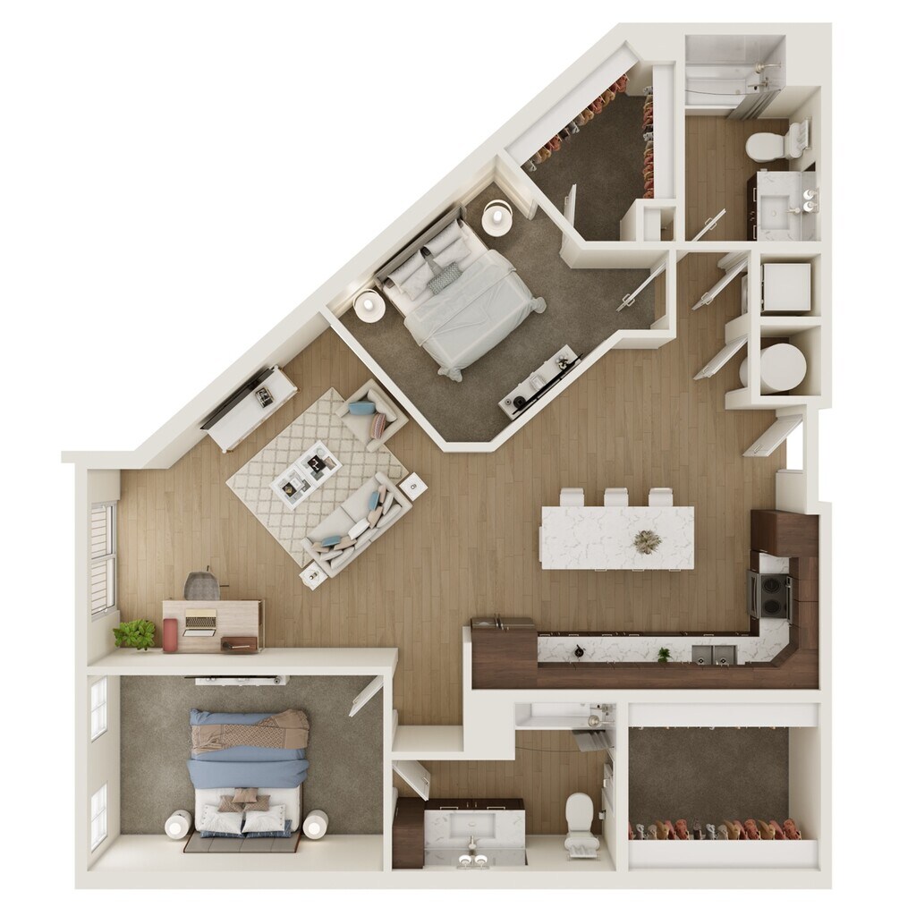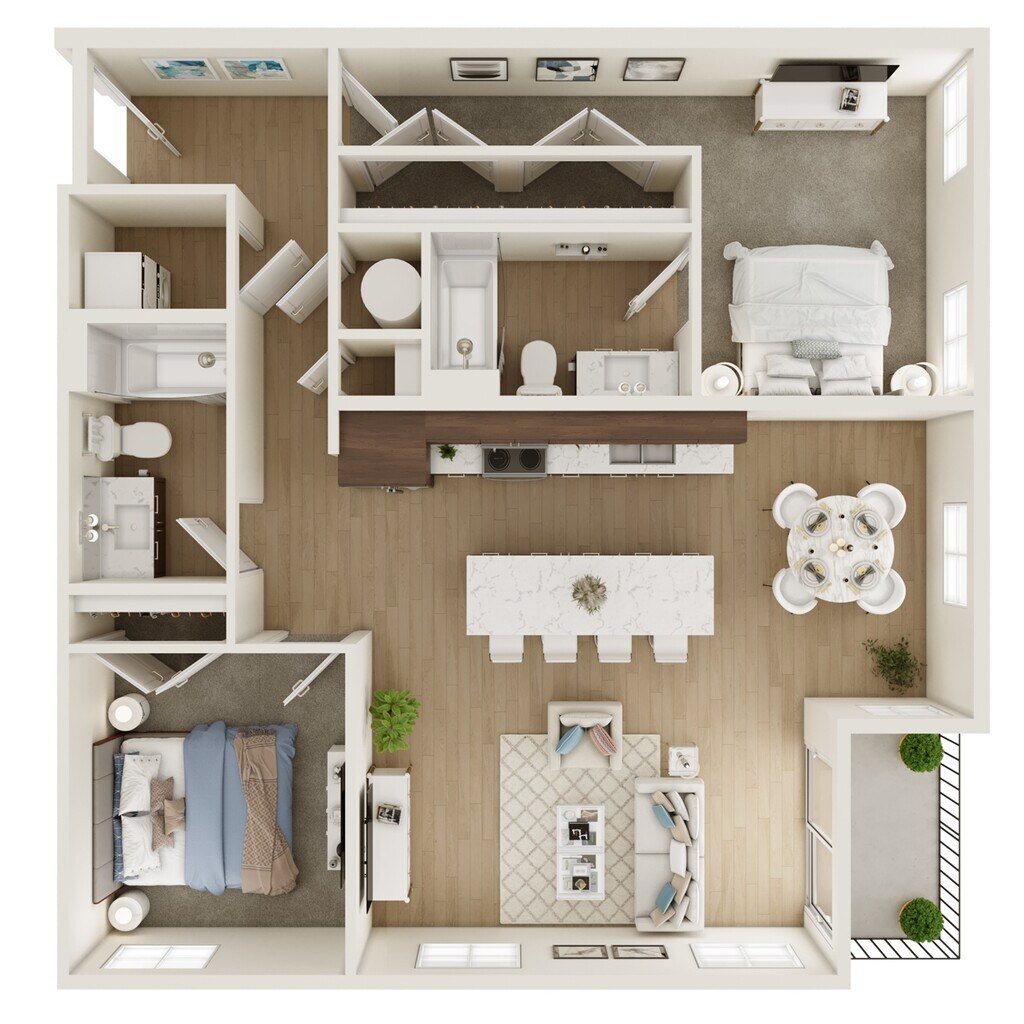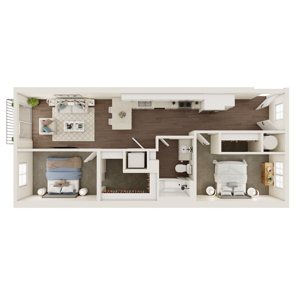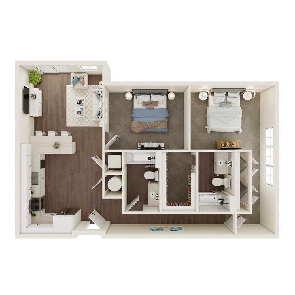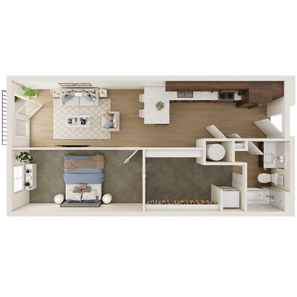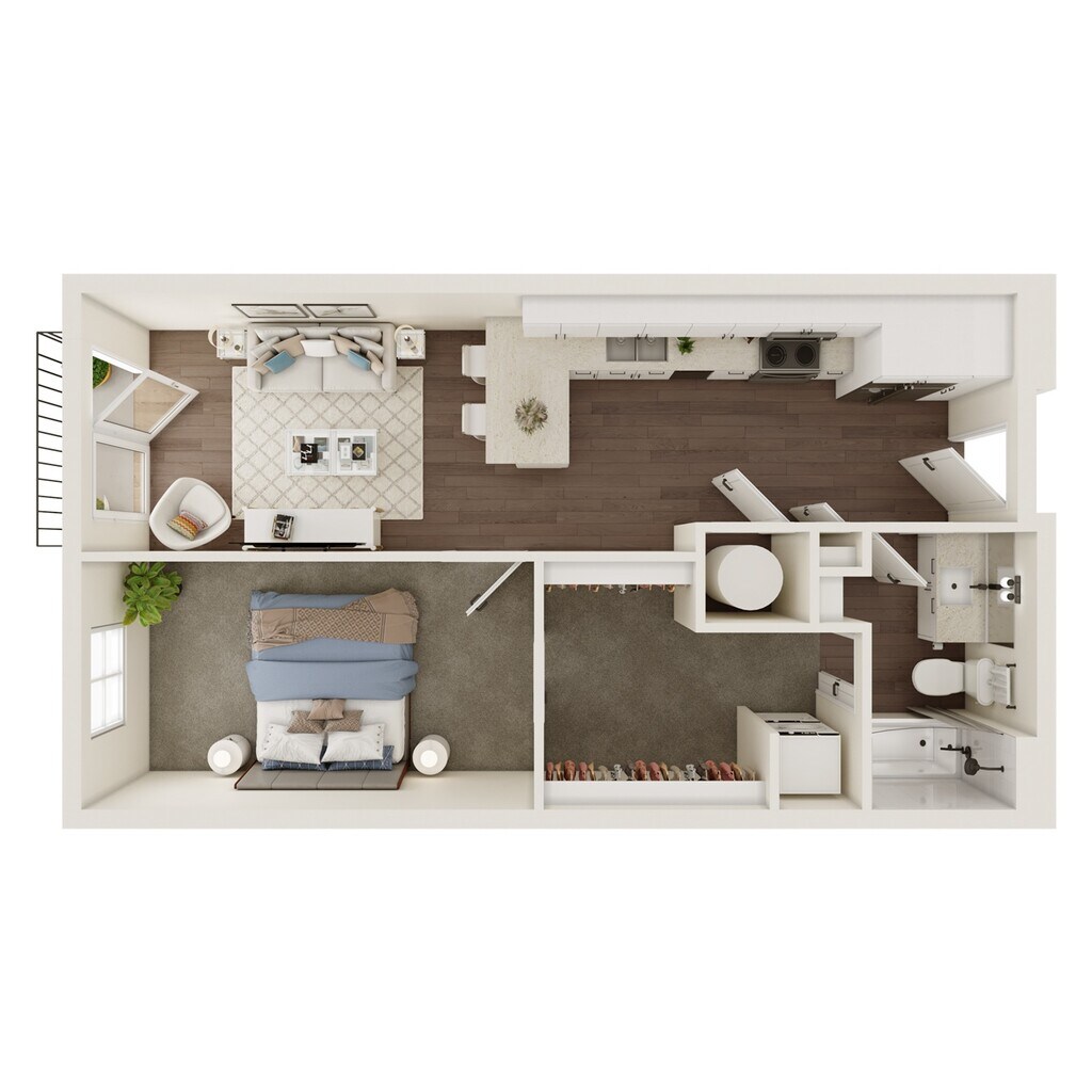 1 Dormitorio, 1 Baño, 677 pies²Disponible February 5, 2026El más grandeEsta opción tiene las unidades más grandes para este modeloGalería del Modelo