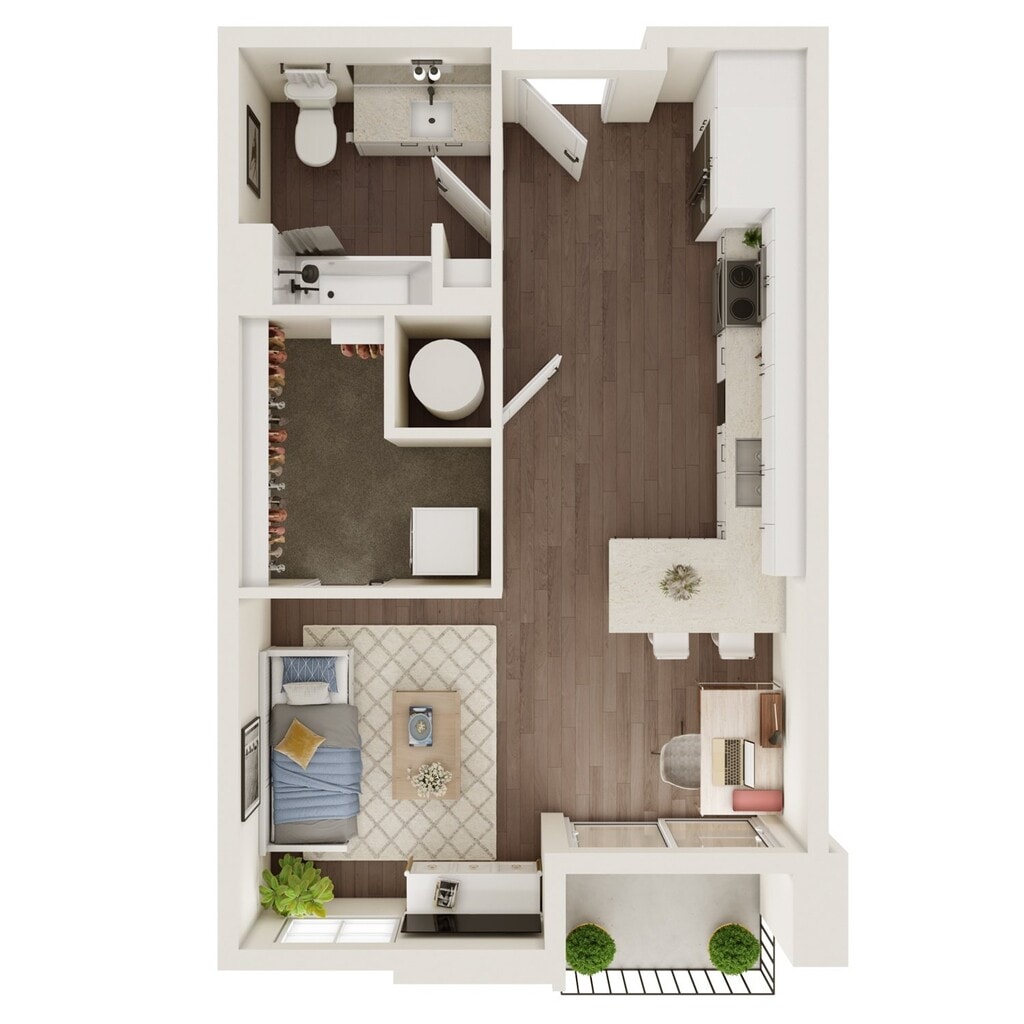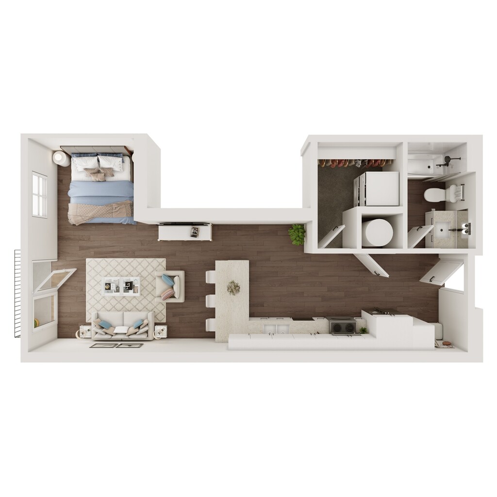 Estudio, 1 Baño, 563 pies²El más grandeEsta opción tiene las unidades más grandes para este modeloGalería del Modelo
