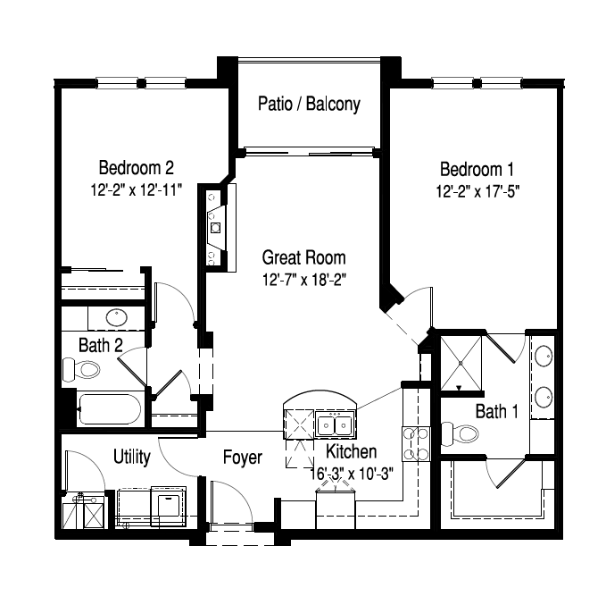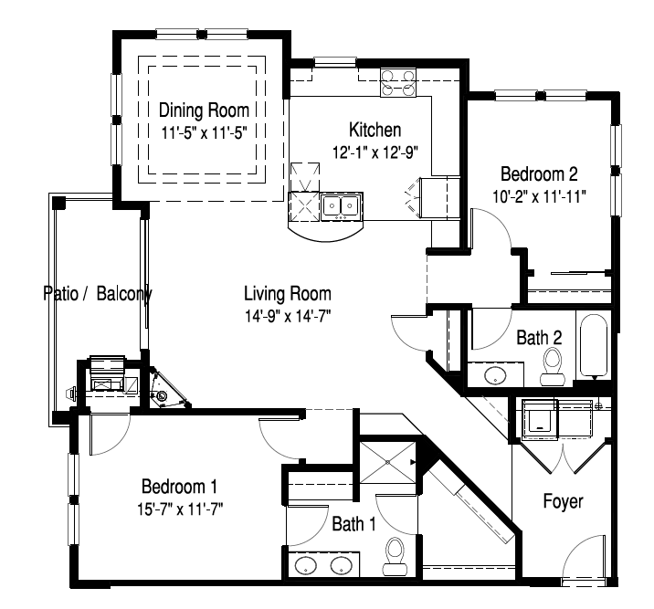 1 Dormitorio, 1 Baño, 1101 pies²Disponible AhoraEl más grandeEsta opción tiene las unidades más grandes para este modeloGalería del Modelo