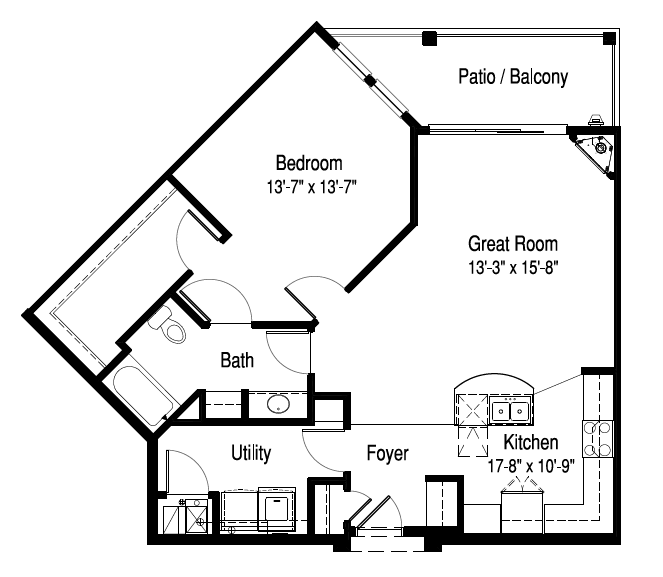 1 Bed, 1 Bath (B) - Plano 1 ![]()