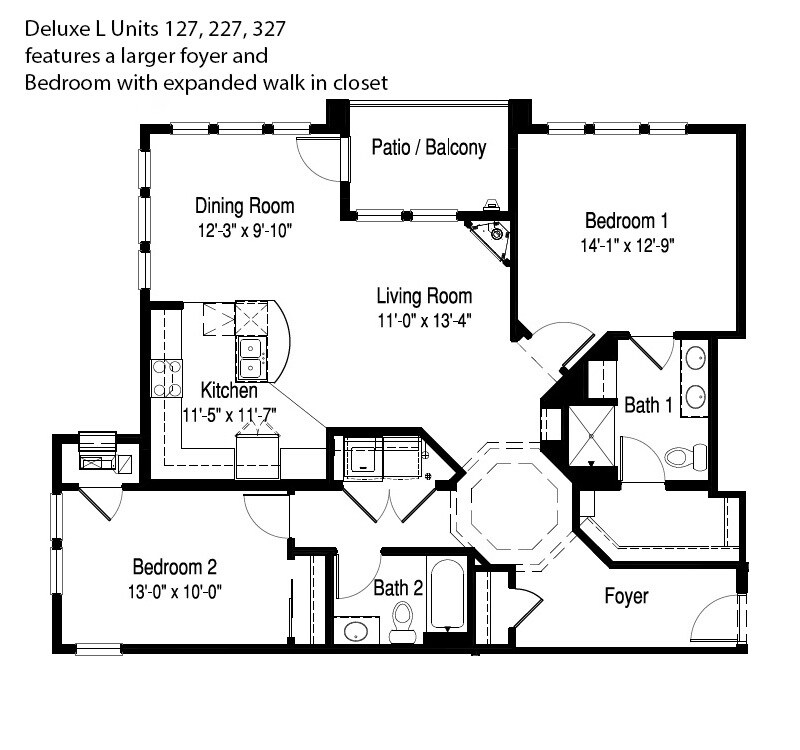 Modelo de apartamento: 1 Bed, 1 Bath (J)Desde $1,9731 Dormitorio, 1 Baño, 1101 sq ftDisponible AhoraPlanosFotos![]()