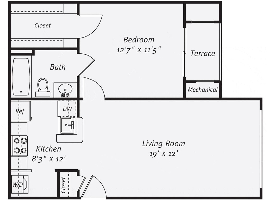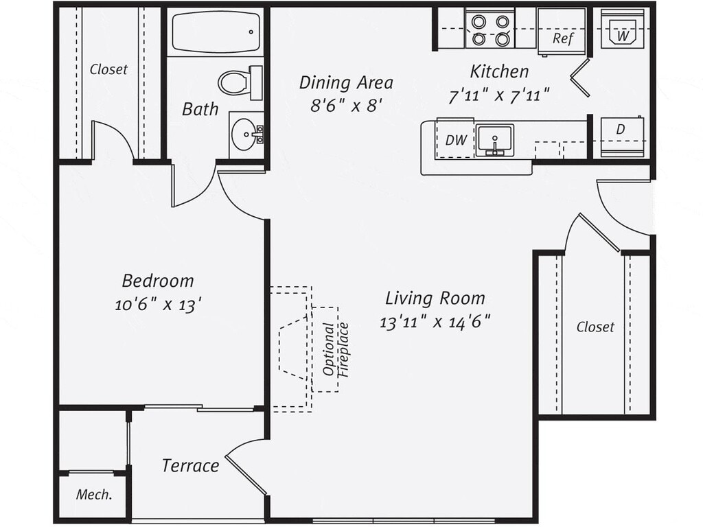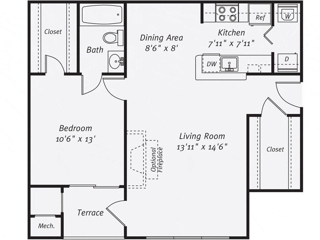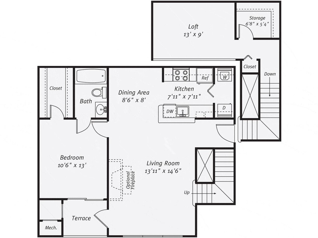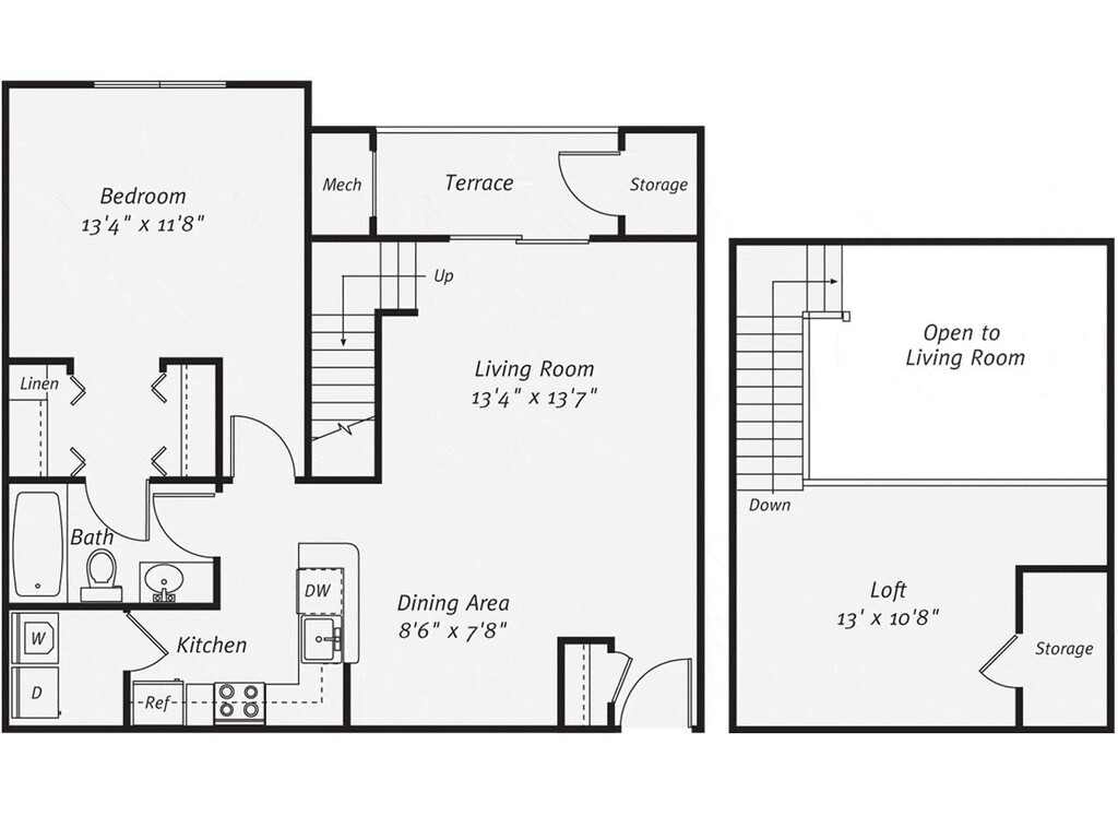 1 Dormitorio, 1 Baño, 713-1052 pies²Disponible AhoraGalería del Modelo