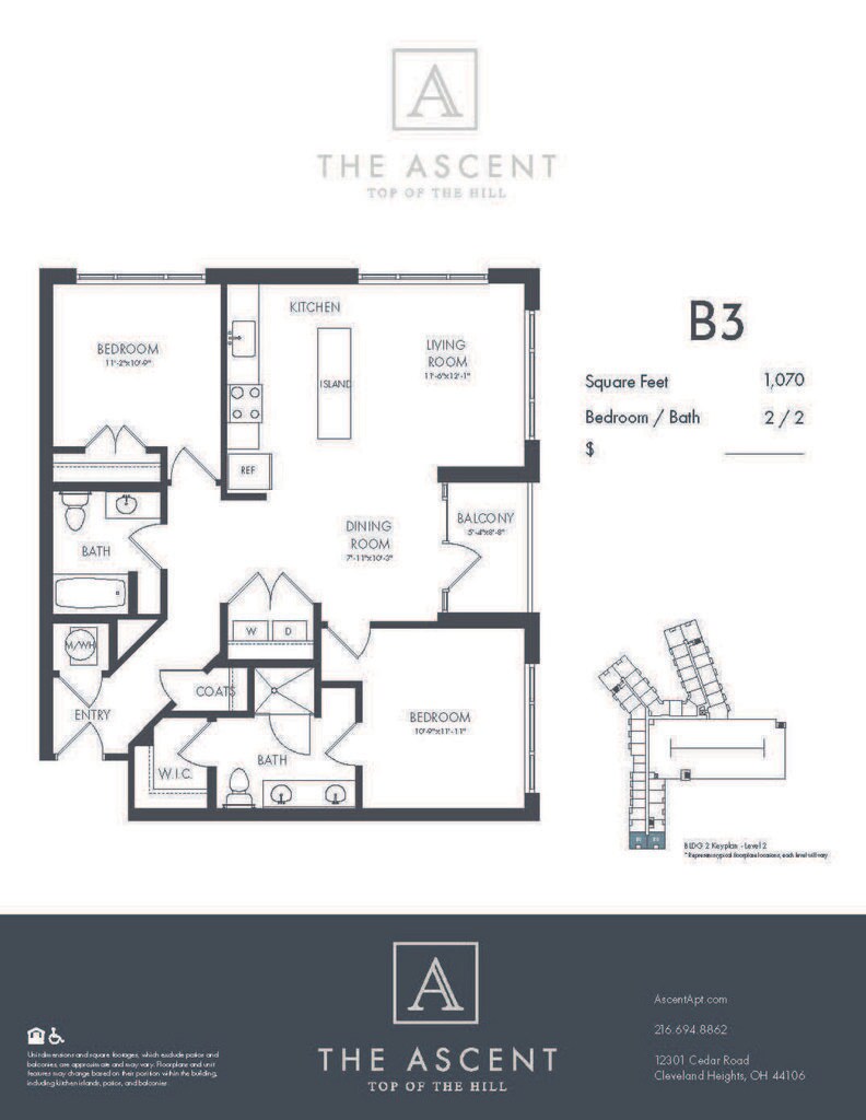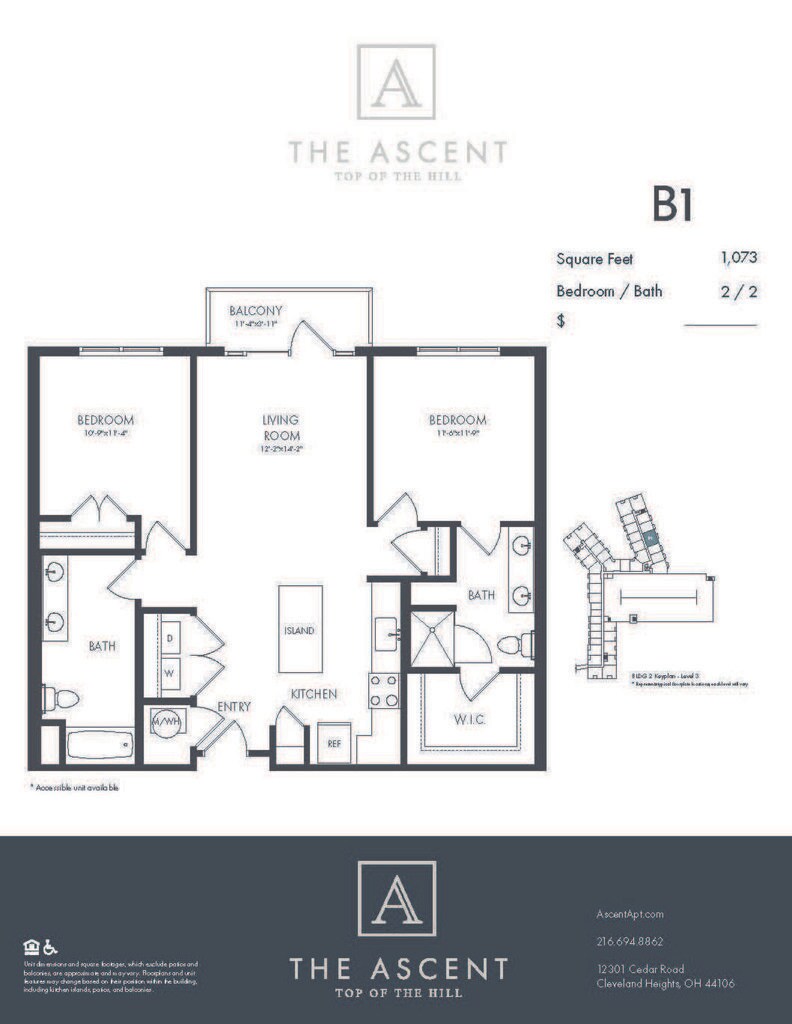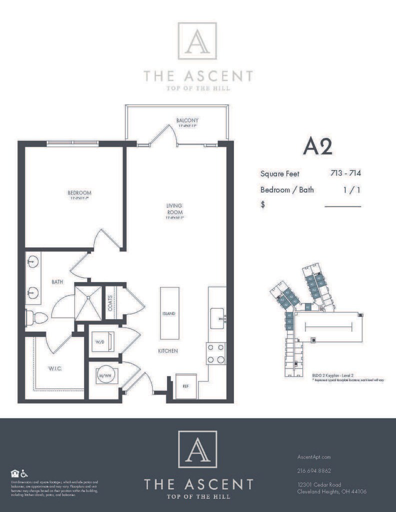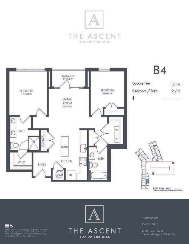The Ascent se encuentra en el Barrio Cedar Fairmount y el código postal 44106 de Cleveland Heights, OH. Esta comunidad está gestionada profesionalmente por Flaherty & Collins Properties