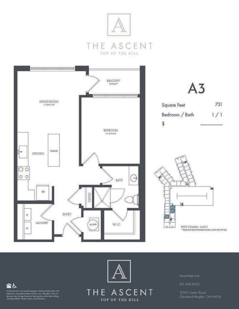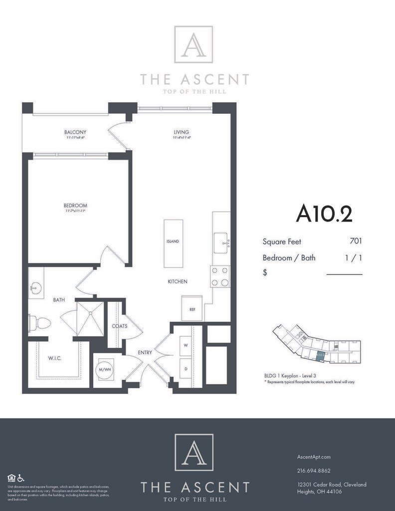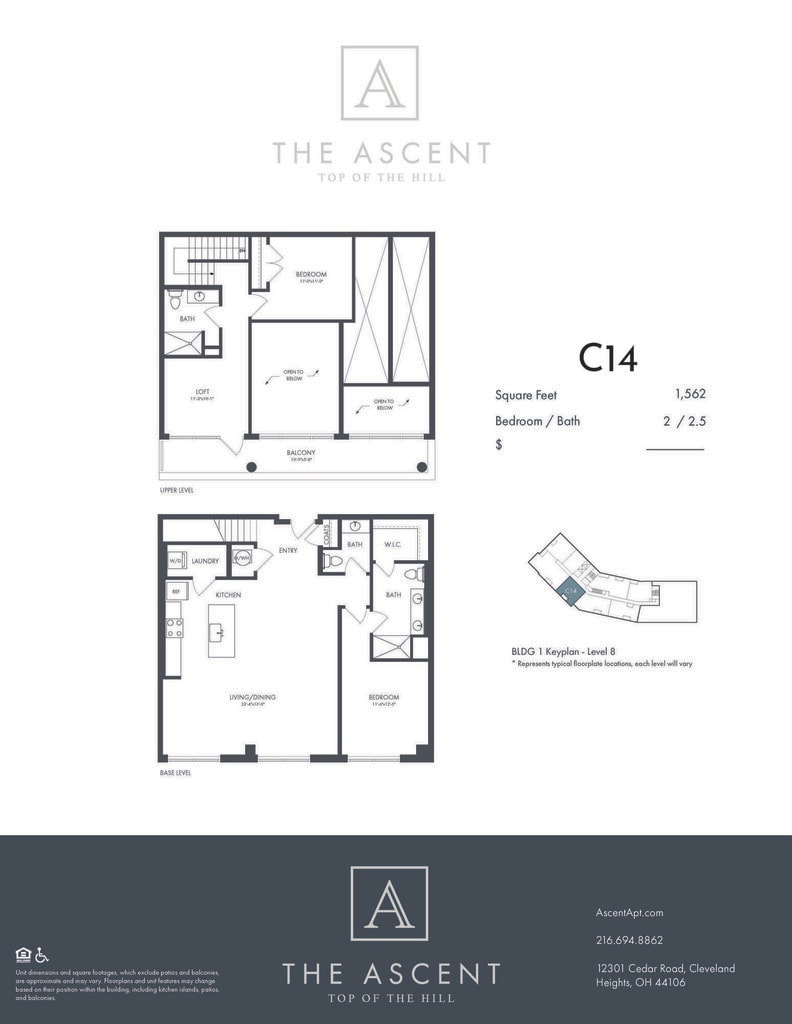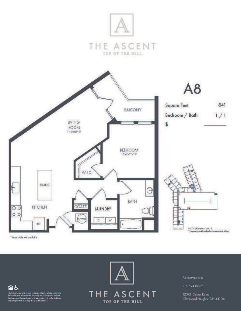 The Ascent se encuentra en el Barrio Cedar Fairmount y el código postal 44106 de Cleveland Heights, OH. Esta comunidad está gestionada profesionalmente por Flaherty & Collins Properties