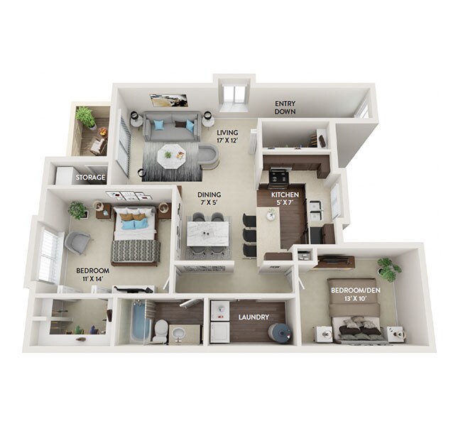 Pine w/ Den - Plano 2 Unidad de apartamento: 785Modelo de apartamento: Pine w/ Den1 Dormitorio, 1 Baño, 975 sq ftDisponible Ahora2 Dormitorios