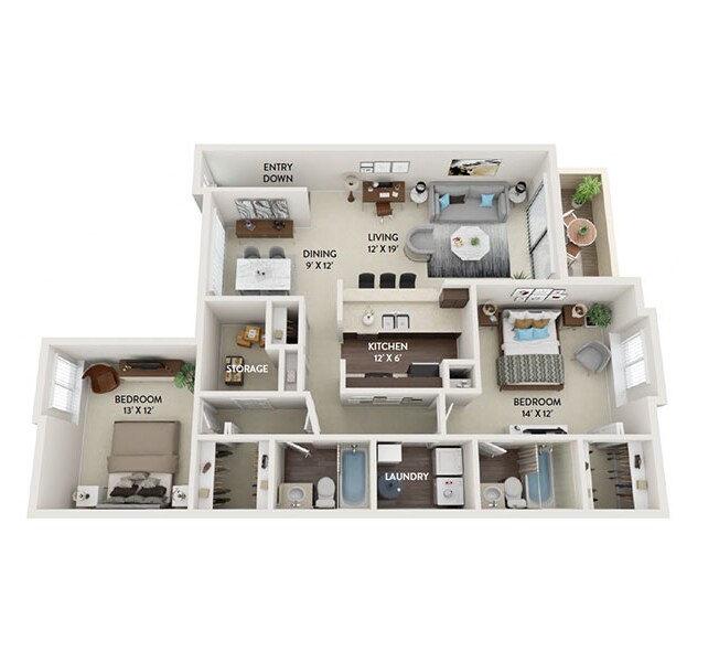 Modelo de apartamento: Oak2 Dormitorios, 2 Baños, 1200 sq ftDisponible Ahora![]()