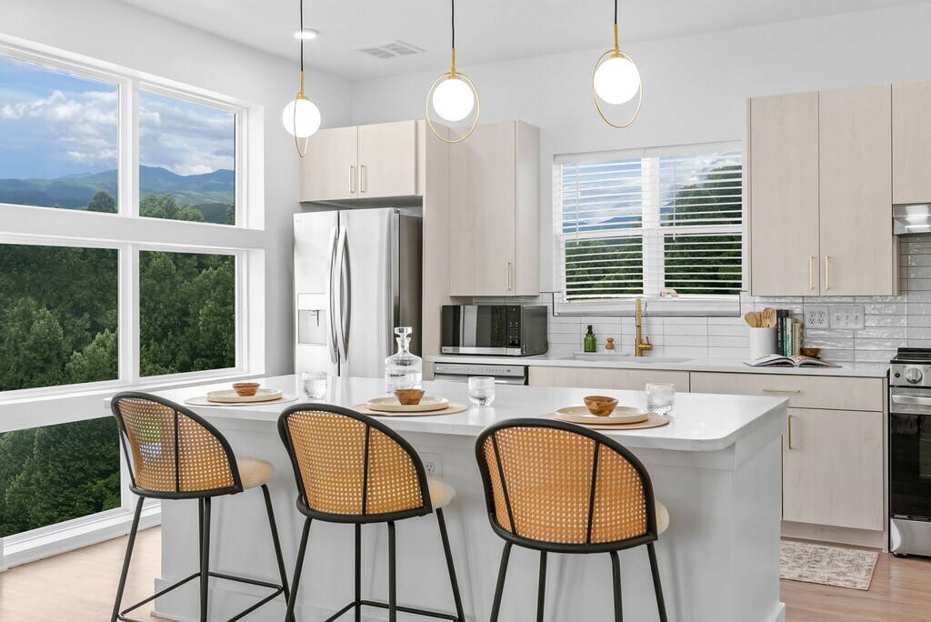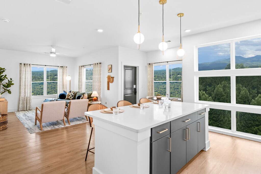 Nestled in the natural beauty of Asheville, The Ashe blends modern sophistication with resort-inspired relaxation. Choose from 1, 2, and 3-bedroom residences, each designed as a serene retreat with fully-equipped kitchens, walk-in closets, and private balconies. Amenities at The Ashe are designed to elevate your lifestyle. Dive into the resort-style pool, challenge friends on the pickleball court, or unwind with a drink in the tap room or wine room. Work remotely in the co-working lounge or stay active in the premium fitness center framed by nature. Outdoor enthusiasts will love the bocce ball court, putting green, and cozy firepits, while pet owners can take advantage of the dedicated dog park and on-site pet spa.With picturesque mountain views and vacation-style comfort, The Ashe is where sophistication meets the tranquility of the Blue Ridge Mountains. Live beautifully, breathe easily, and elevate your everyday lifeat The Ashe.