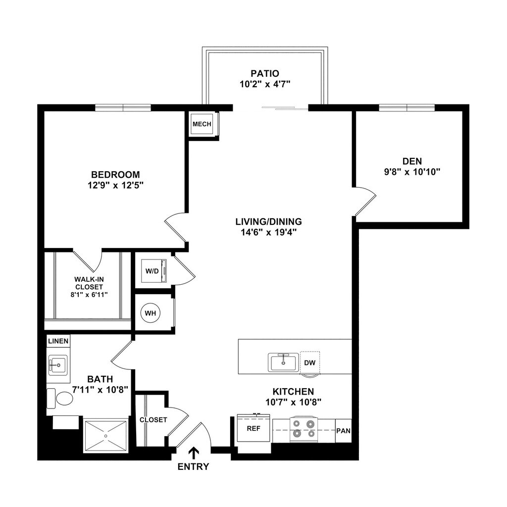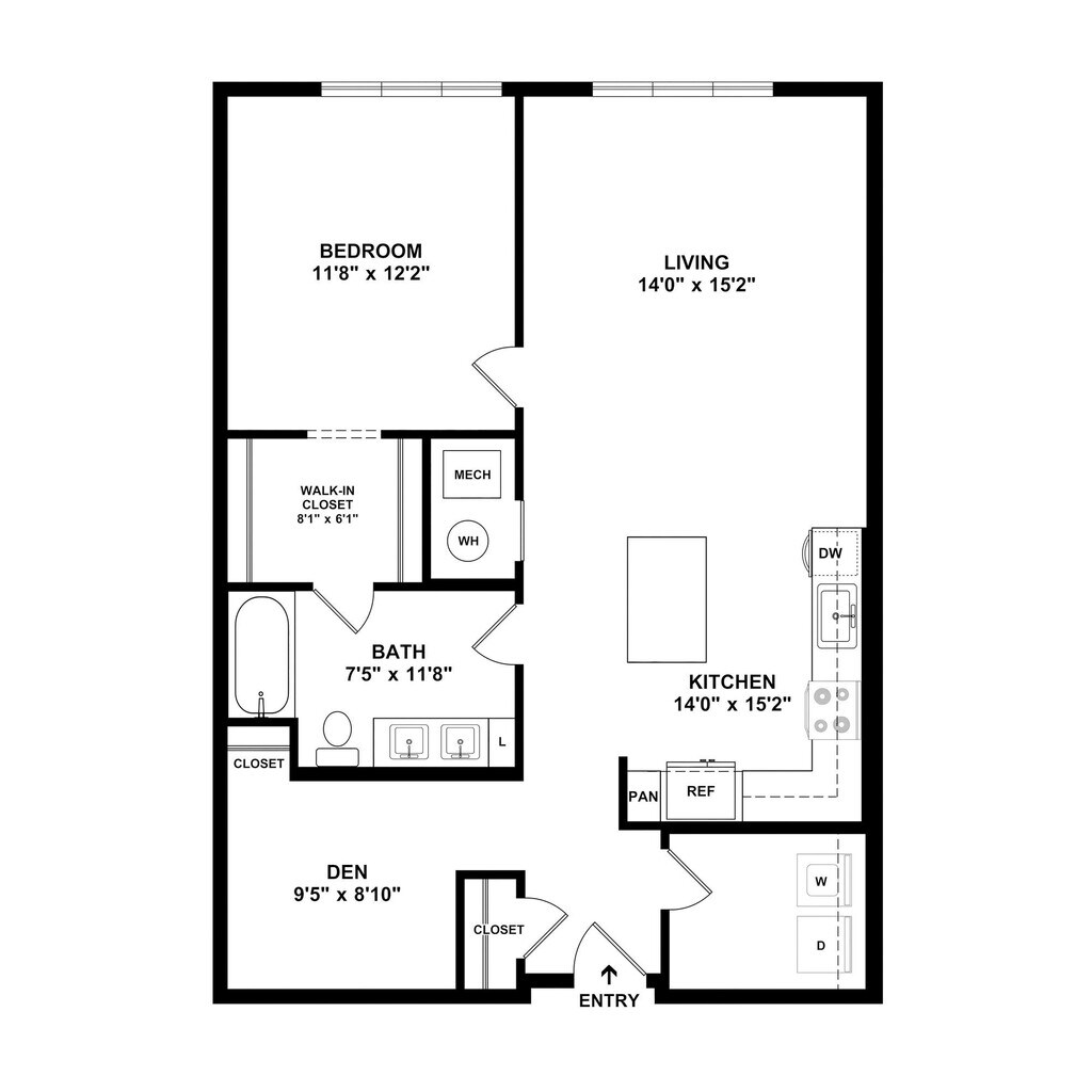 Modelo de apartamento: One Bed One Bath 1A.5Desde $2,6861 Dormitorio, 1 Baño, 758 sq ftDisponible AhoraLos planos son representaciones artísticas. Todas las dimensiones son aproximadas. El producto y las especificaciones reales pueden variar en tamaño o detalle. No todas las características están disponibles en cada vivienda en alquiler. Por favor, consulta con un representante para obtener más detalles.