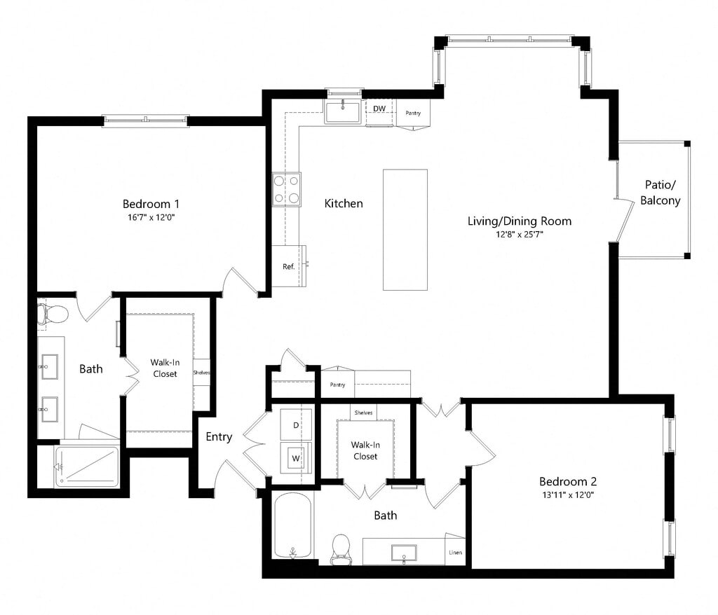 Modelo de apartamento: A8Desde $1,6461 Dormitorio, 1 Baño, 868 sq ftDisponible AhoraLos planos son representaciones artísticas. Todas las dimensiones son aproximadas. El producto y las especificaciones reales pueden variar en tamaño o detalle. No todas las características están disponibles en cada vivienda en alquiler. Por favor, consulta con un representante para obtener más detalles.
