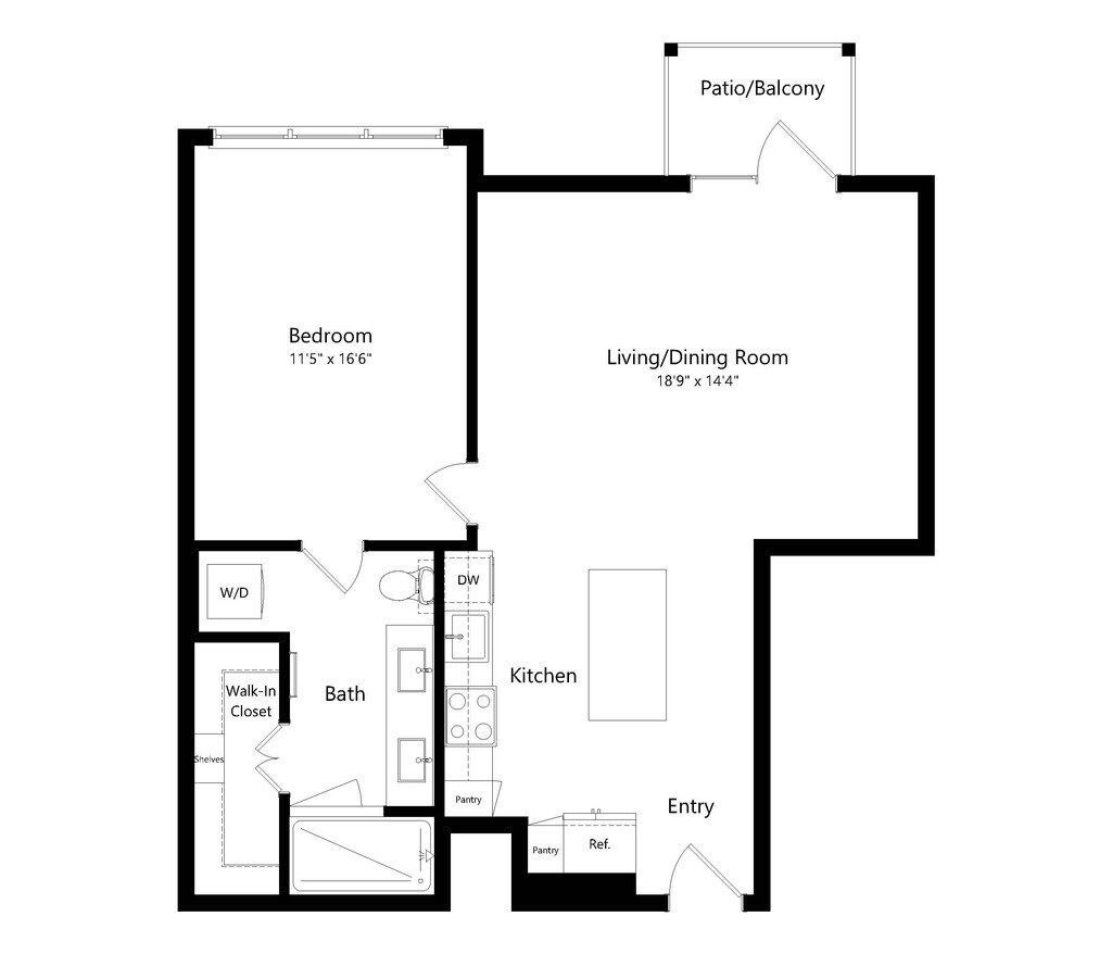 1 Dormitorio, 1 Baño, 868 pies²Precio Mensual TotalDisponible AhoraGalería del Modelo